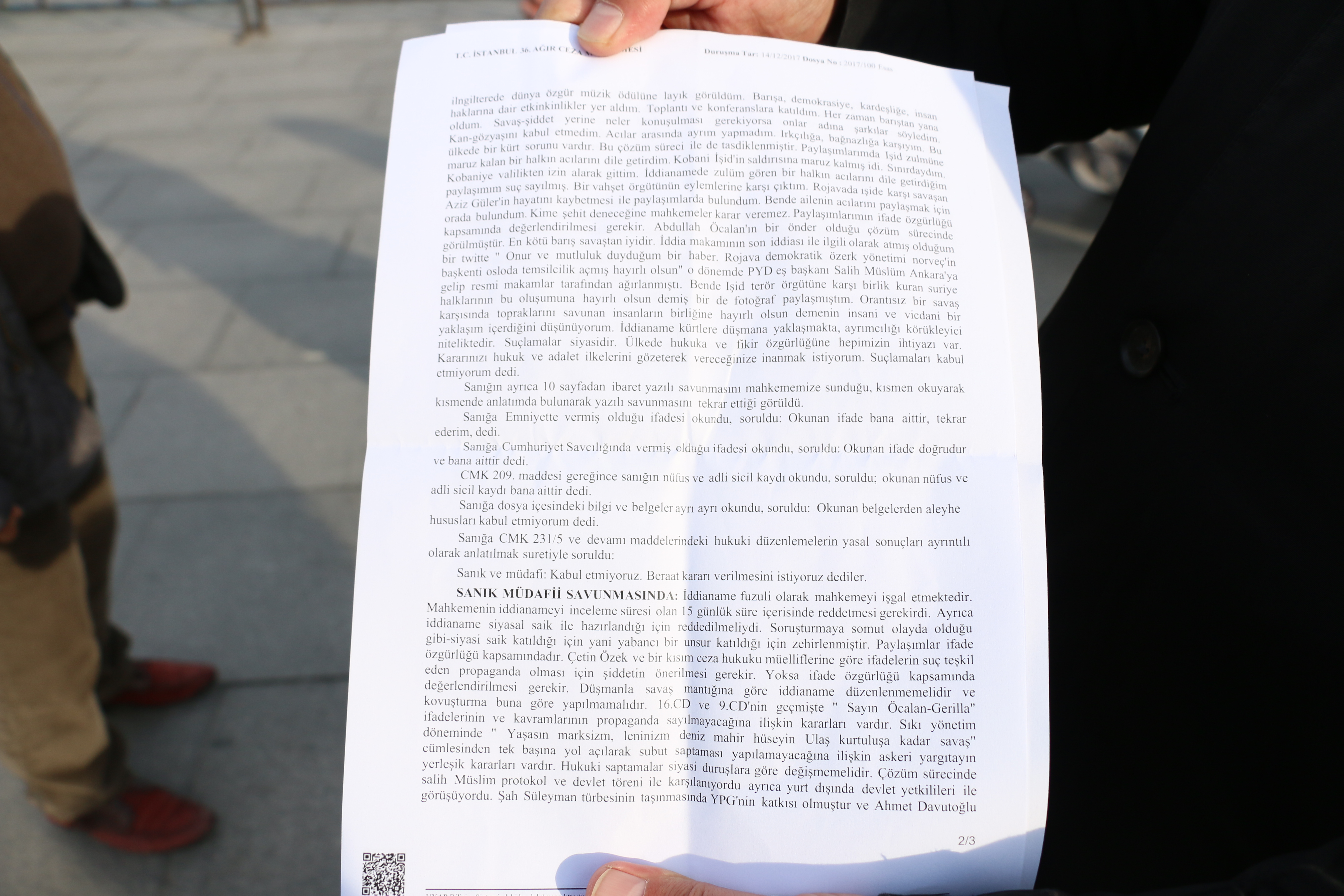“Deyim yerindeyse düşman hukuku zihniyeti ile hazırlanmış bir iddianame. İki yıl öncesine dair attığım Tweetleri bir araya getirerek bir iddianame hazırlamışlar. Attığım Tweetlerin çoğunda Rojava ve Kobani’de İŞİD barbarlarına karşı kendi topraklarını ve insanlarını savunanlara ilişkin görüşlerimi içeriyor. Aynı dönemde Türkiye’de başbakanlık ve MİT düzeyinde devlet kurumları PYD temsilcileri ile görüşmeler yapıyordu. Bu dönemde ben de görüşlerimi paylaşmışım. Bu görüşler bugün suç haline dönüştürülmüş. Ve bizi bu temelde suçluyorlar. Böyle bir suçlamayı savunmamızda kabul etmediğimizi açıkladık. (HABER MERKEZİ)