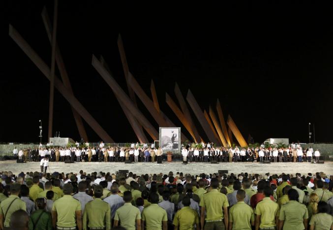 Törende konuşan Castro’nun kardeşi ve Küba Devlet Başkanı Raul Castro, “Gençler, Fidel’in ideallerini devam ettirecekler” dedi. Sosyalizmi savunmaya devam edeceklerini belirten Castro, “Avrupa’daki sosyalist kampın dağılması ve Sovyetler Birliği’nin yıkılmasından sonra oluşan tek kutuplu ve uluslararası tekellerin tek güç sahibi olduğu dünyada, sosyalizmin kazanımlarından ve ilkelerinden vazgeçmeden direnebilir ve gelişebiliriz” diye konuştu.