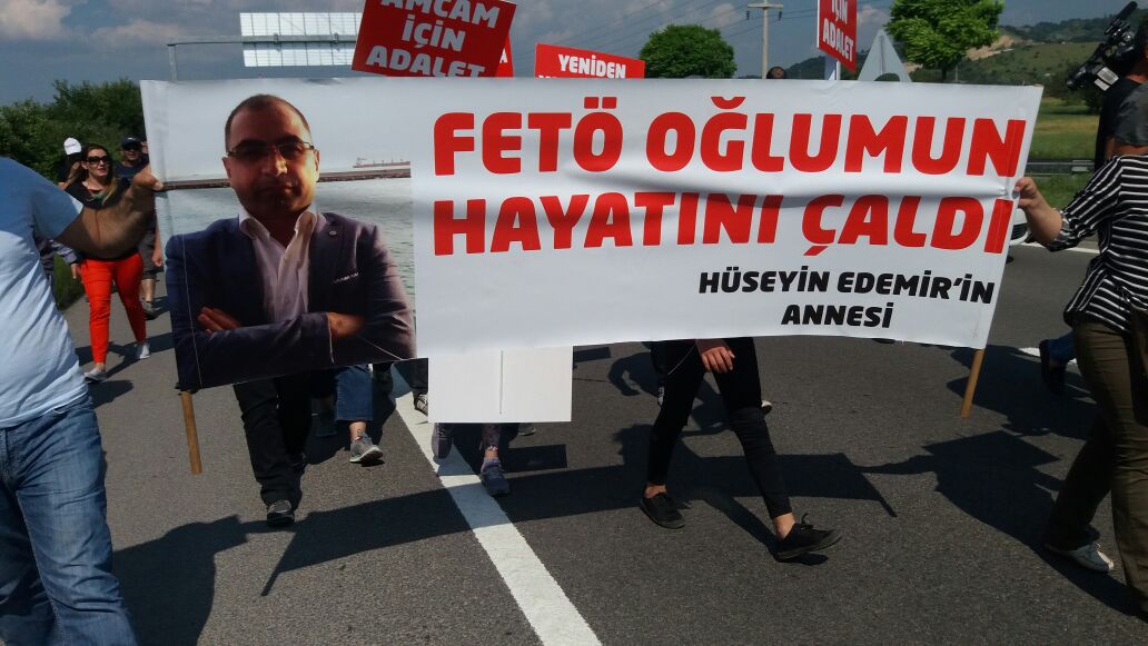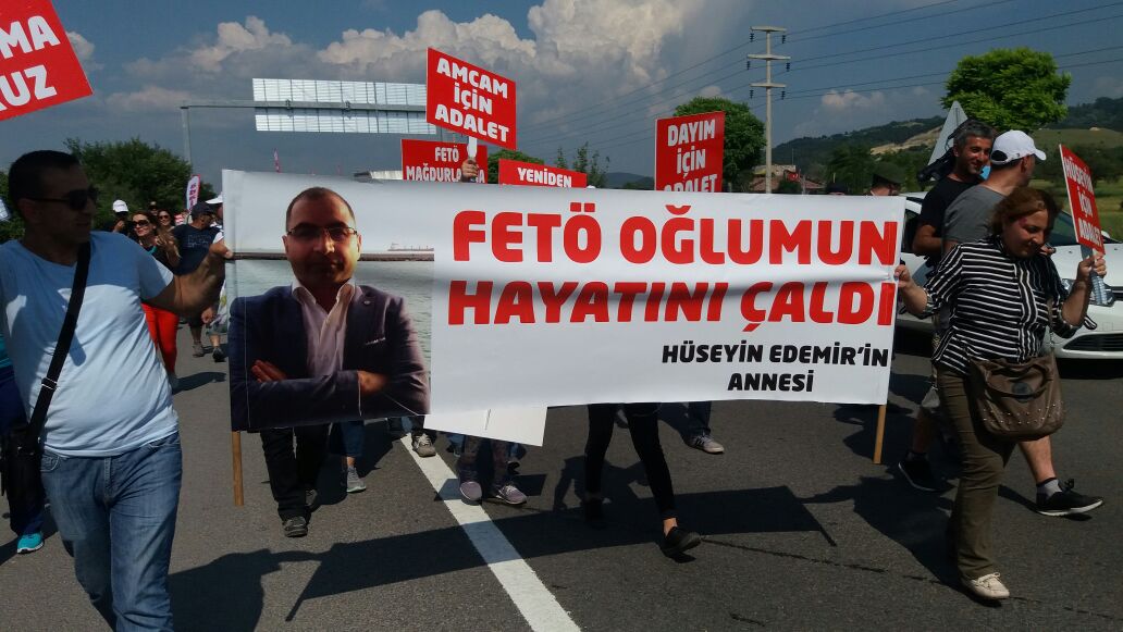 Yürüyüşe katılan anne Gülsün Edemir oğlu icin 7 yıldır adalet aradığını FETÖ nün oğlunun hayatını çaldığını haykırdı. Hüseyin Edemir’in yeniden yargılanmasını istediğini belirten Gülsün Edemir, “Benim oğlumu hiçbir suçu yokken aldılar. Hayatını kararttılar onun. Gece gündüz beddua ettim. Şimdi onlar da içeride yatıyorlar. Daha da beter olsunlar. Ama benim oğlum suçsuz. Bir suçu varsa bile yeniden yargılasınlar” dedi.