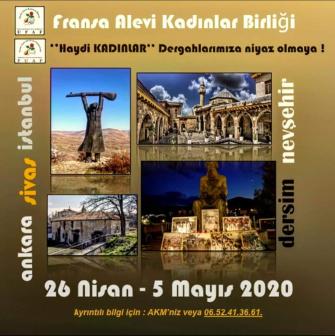 26 Nisan – 5 Mayıs 2020 tarihleri arasında gerçekleşecek ziyaret için Fransa Alevi Kadınlar Birliği, “Haydi Kadınlar, dergahlarımıza niyaz olmaya! Bizler için önemli olan kutsallarımızı, tarihsel sürecini bilen canlarımızla birlikte tanıma fırsatı bulacağız” diyerek çağrı yaptı.