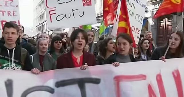 Grev kararına destek vermek için ülke genelinde gösteriler de düzenlendi. Polis, gösterilere 200 bin insanın katıldığını açıkladı. Başkent Paris’te iki koldan başlayan yürüyüş Bastille Meydanı’na aktı. Nantes, Marsilya, Strasbourg, Lyon ve Bordeaux kentleri başta olmak üzere tüm kentlerde yürüyüş düzenlendi. Paris’te Nation Meydanı’ndan başlayan yürüyüş ile Nantes gösterilerinde daha yürüyüşün başında, genç göstericiler ve polis arasında yer yer çatışmalar yaşandı. Gençlerin taş, şişe fırlatmasına karşı polis gözyaşartıcı bomba ile yanıt verdi. Nantes kentinde 7 gösterici gözaltına alındı.