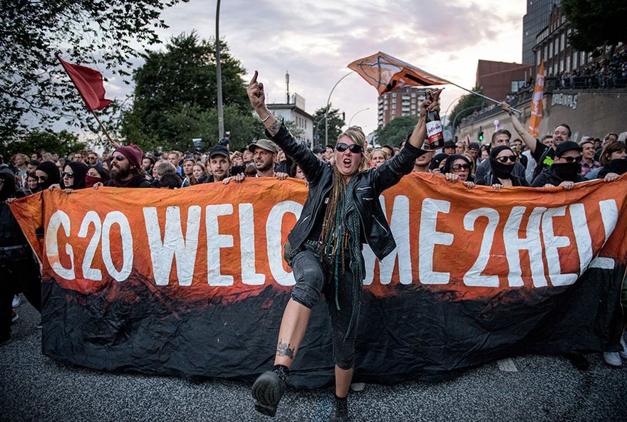 Zirve’ye katılan liderler Hamburg Konser Salonu’nda Bethoveen’in 9’uncu Senfonisini dinlerken, Hamburg sokaklarında protesto gösterileri devam ediyordu.