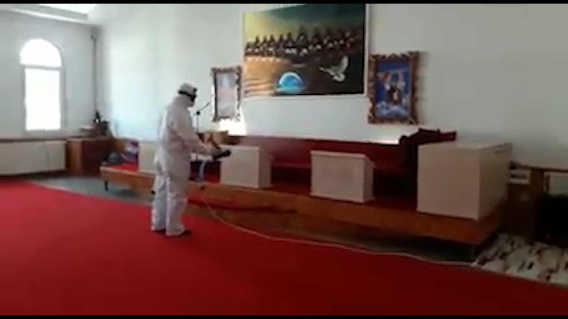 PİRHA – İstanbul Küçükçekmece’de bulunan ve her gün yüzlerce yurttaşın ziyaret ettiği Garip Dede Dergahı, Koronavirüsüne karşı İBB çalışanları tarafından dezenfekte edildi.