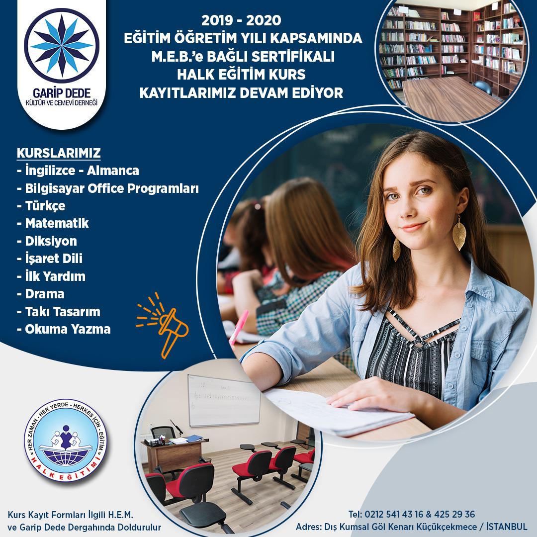 İstanbul Küçükçekmece’de bulunan Garip Dede Dergahı’nda eğitim kursları başlıyor. Yeni hizmet binasında açılan eğitim birimlerinde Küçükçekmece Halk Eğitim Merkezi’nden gelecek öğretmenler tarafından Almanca, Drama, İngilizce, İlk Yardım, İşaret dili, Diksiyon, Matematik, Türkçe, Office Program kursları verilecek.