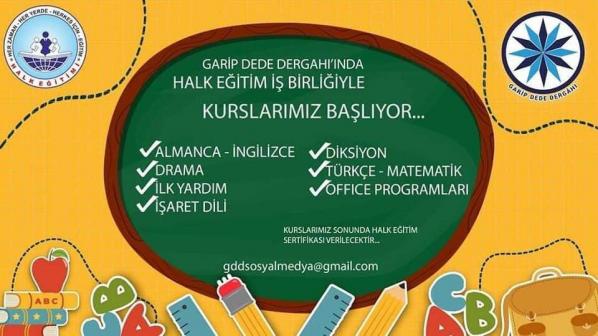 İstanbul Küçükçekmece’de bulunan Garip Dede Dergahı’nda eğitim kursları başlıyor. Yeni hizmet binasında açılan eğitim birimlerinde Küçükçekmece Halk Eğitim Merkezi’nden gelecek öğretmenler tarafından Almanca, Drama, İngilizce, İlk Yardım, İşaret dili, Diksiyon, Matematik, Türkçe, Office Program kursları verilecek.