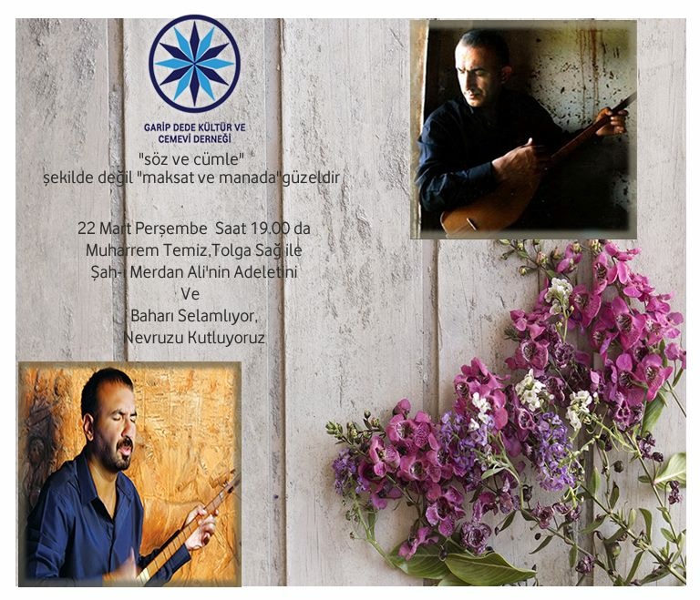 Garip Dede Dergahı, ‘Söz ve cümle’ şekilde değil ‘maksat ve manada’ güzeldir, diyor. Dergahta 22 Mart Perşembe günü saat 19.00’da Muharrem Temiz ve Tolga Sağ’ın katılımı ile Hz. Ali’nin doğum günü vesilesiyle baharı karşılama anlamına gelen Newroz’u kutluyor.