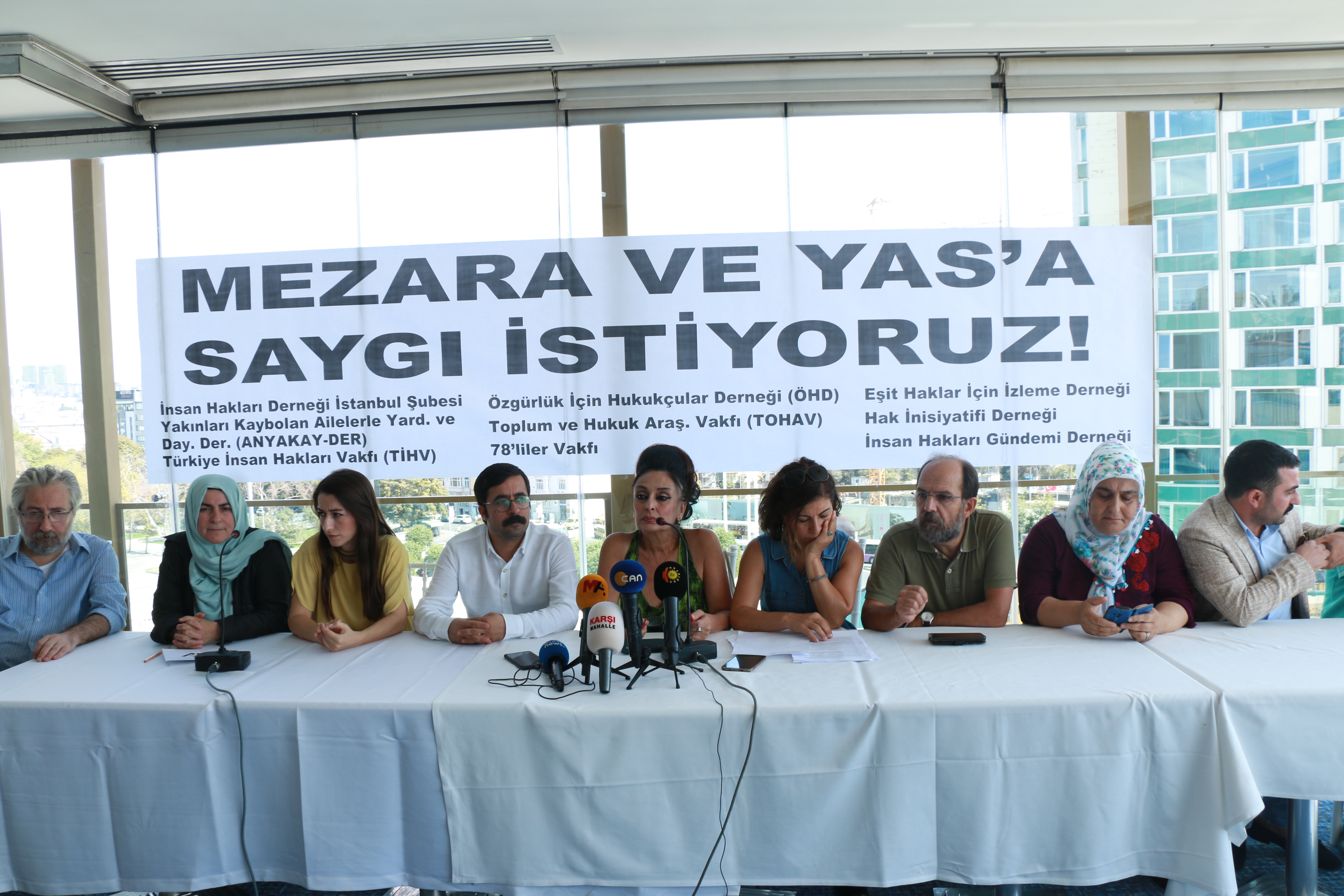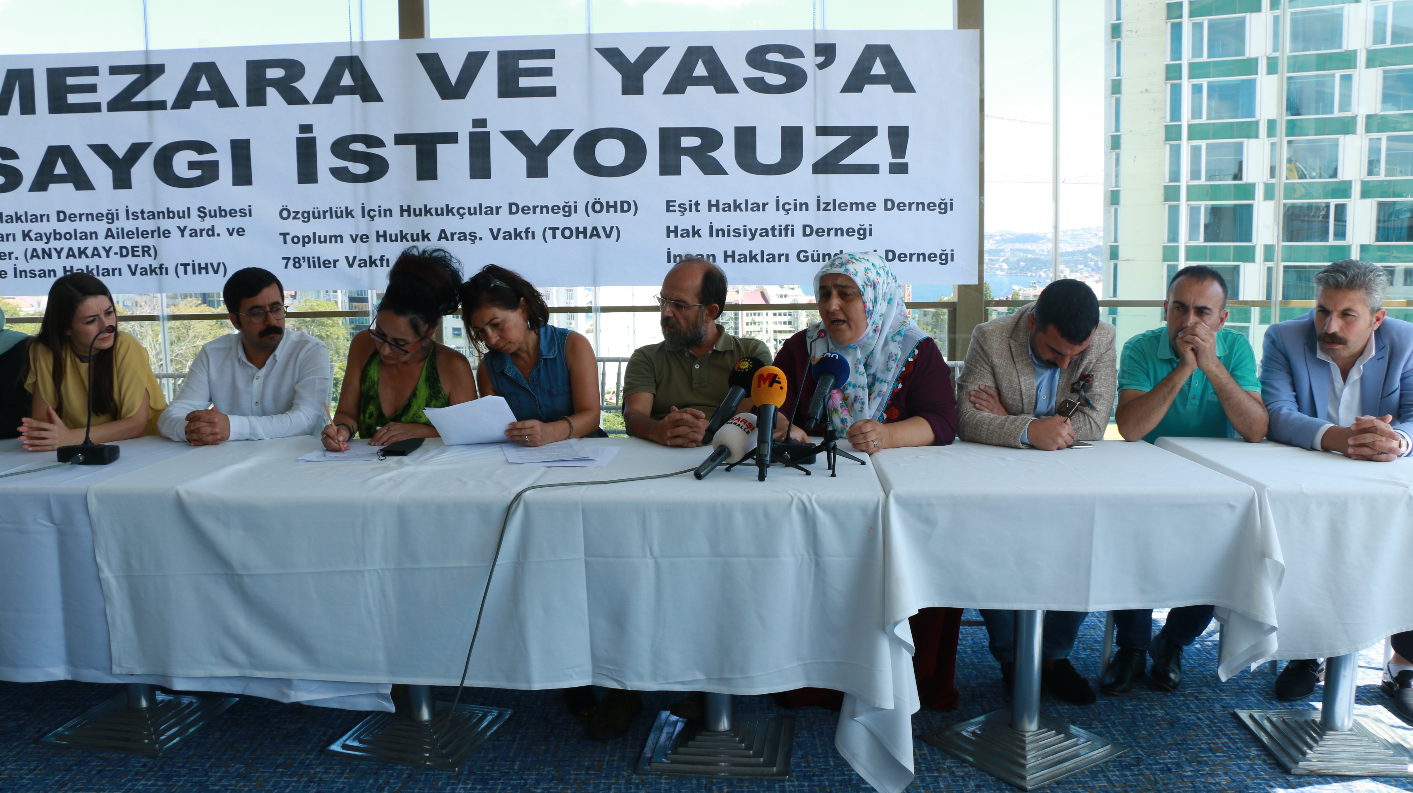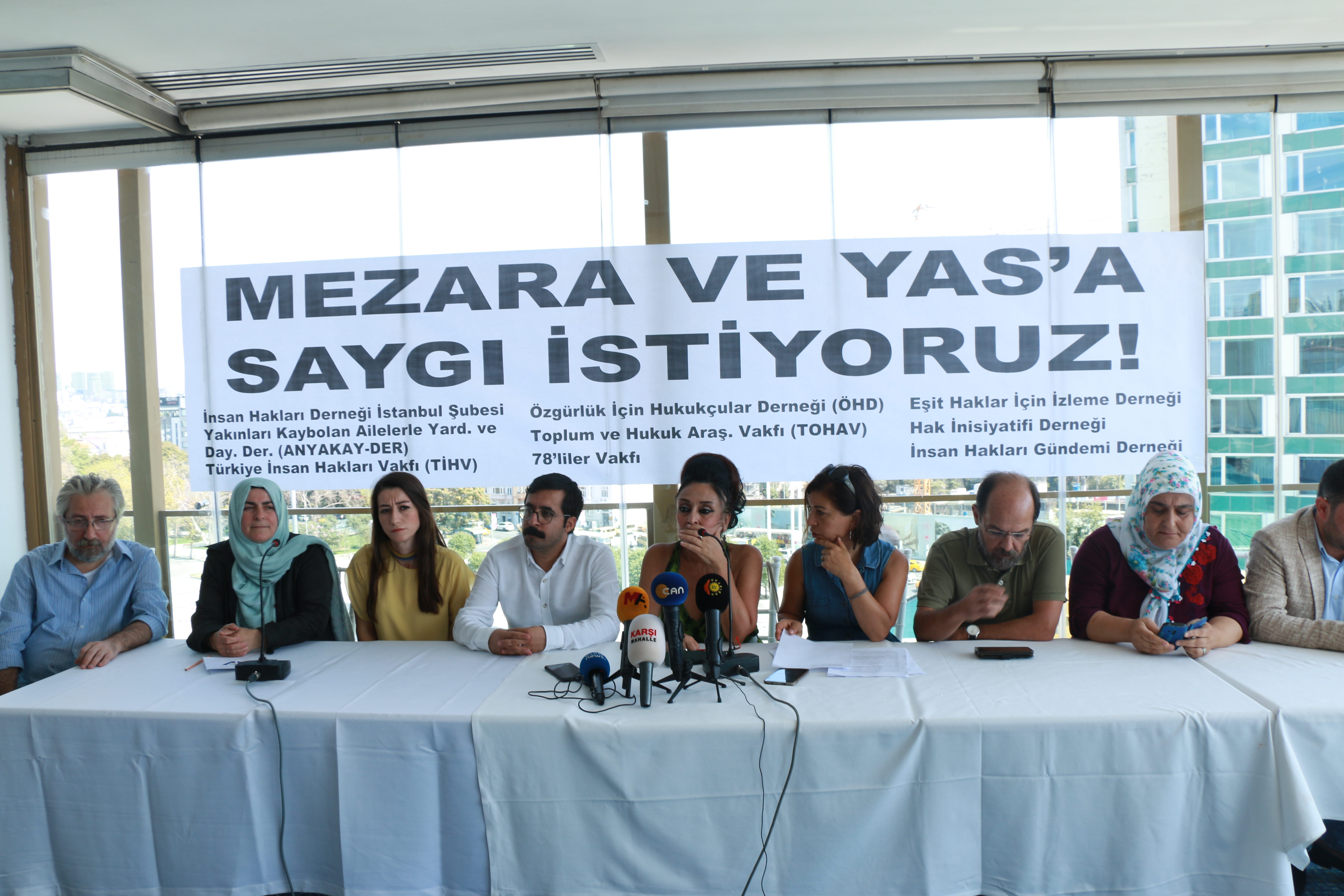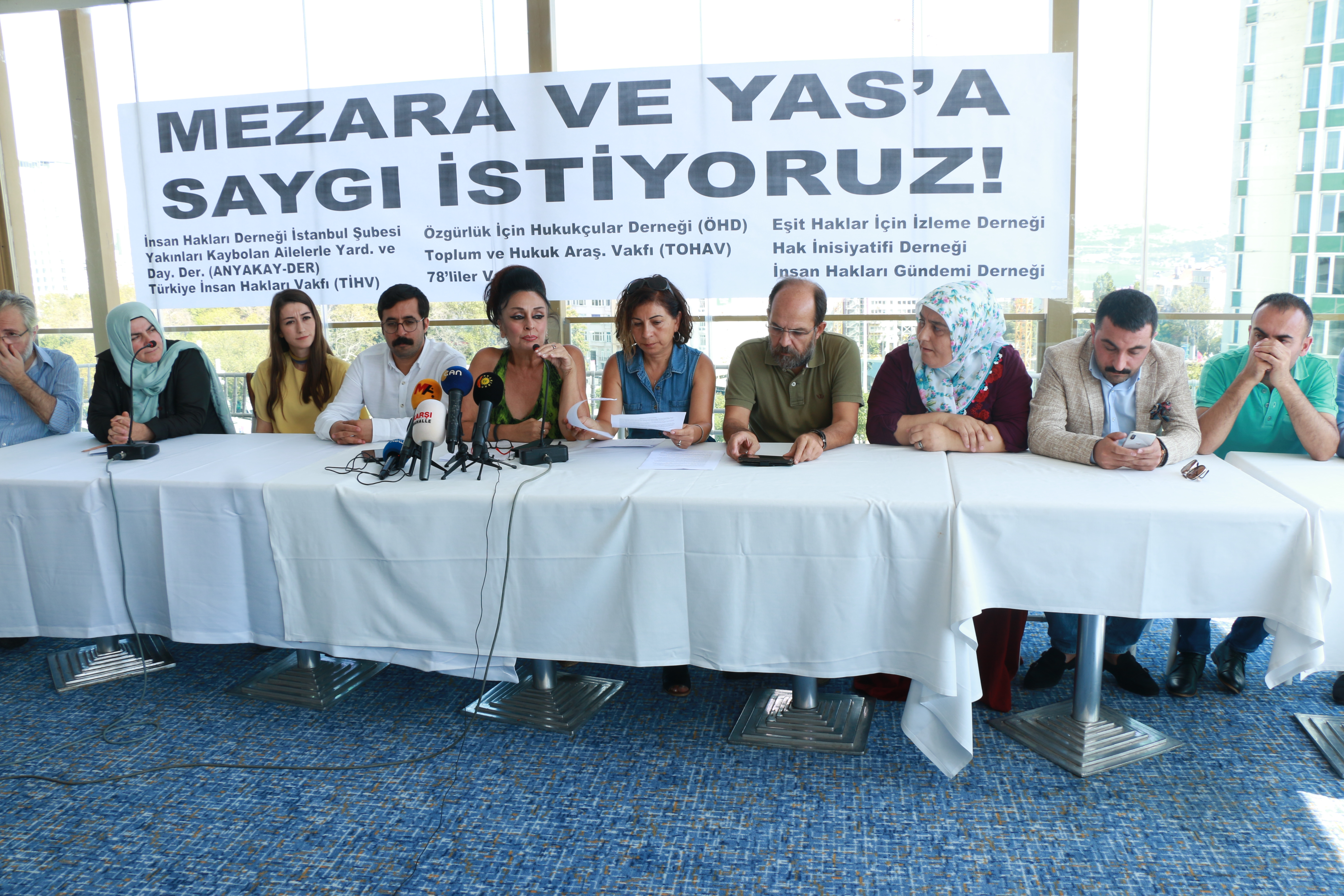 Toplantının yapıldığı salona “Mezara ve yas’a saygı istiyoruz” yazılı pankart asıldı. Hazırlanan ortak basın metnini İHD İstanbul Şube Başkanı Gülseren Yoleri okudu. 2 Ocak 2018 tarihinde Bitlis Valiliği tarafından yapılan açıklamada mera kapsamında olan bir bölgede mezarlık yapılamayacağına dayanarak, Bitlis Sulh Ceza Hakimliği’nin 4 Aralık 2017 tarihli kararı ile mezar açma işleminin yapıldığını belirten Yoleri, 279 mezarın açıldığını, 11 mezarın boş olduğunun tespit edildiğini ve cenazelerin DNA testleri yapılmak üzere İstanbul Adli Tıp Kurumu’na sevk edildiğini ifade etti. Türkiye’nin uluslararası sözleşmelere imza attığını ve bu sözleşmeleri anayasasının 90’ıncı maddesi ile kendi iç hukukunun üzerinde kabul ettiğini belirten Yoleri, insancıl hukukun, en önemli dayanakları arasında kabul edilen Cenevre Sözleşmesi’nin 1953 yılında Türkiye tarafından kabul edildiğini anımsattı.