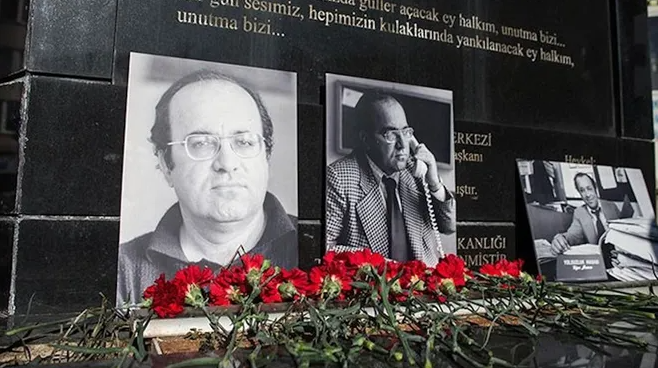Ankara’da evinin önünde 24 Ocak 1993’te arabasına konulan bombanın patlaması sonucu öldürülen Mumcu bu yıl sokağa çıkma yasağı nedeniyle dün anıldı. Türkiye Gazeteciler Sendikası (TGS) tarafından düzenlenen anma törenine çok sayıda gazeteci katılırken anıta Mumcu’nun fotoğrafları ve kırmızı karanfiller bırakıldı.