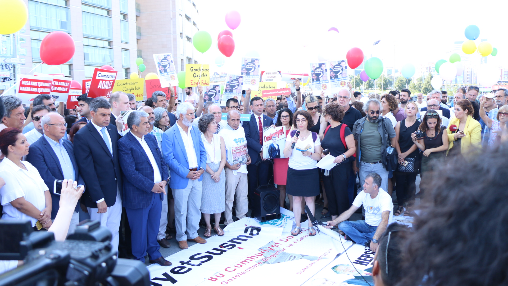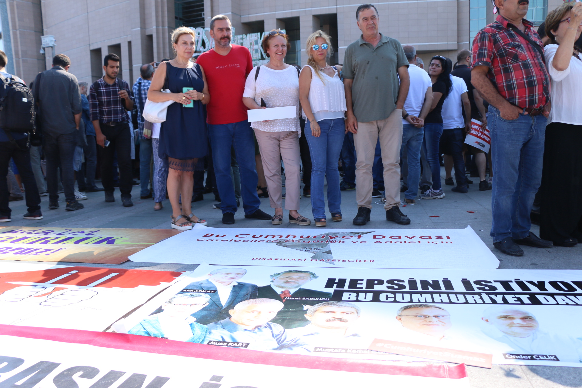 5 gün boyunca sürecek duruşmanın yanı sıra adliye önünde de “Dışarıdaki Gazeteciler” dayanışma etkinliği düzenledi. Türk basınında sansürün kaldırılışının 109. yıldönümüne denk gelen ilk duruşma öncesinde basın meslek örgütleri Cumhuriyet Gazetesi’nin Şişli’deki merkezinden adliyeye yürüdü. Dava öncesi Çağlayan’daki İstanbul Adalet Sarayı önünde toplanan çok sayıda gazeteci ve milletvekili, gazetecilere özgürlük sloganları atarak, gökyüzüne balonlar bıraktı.
