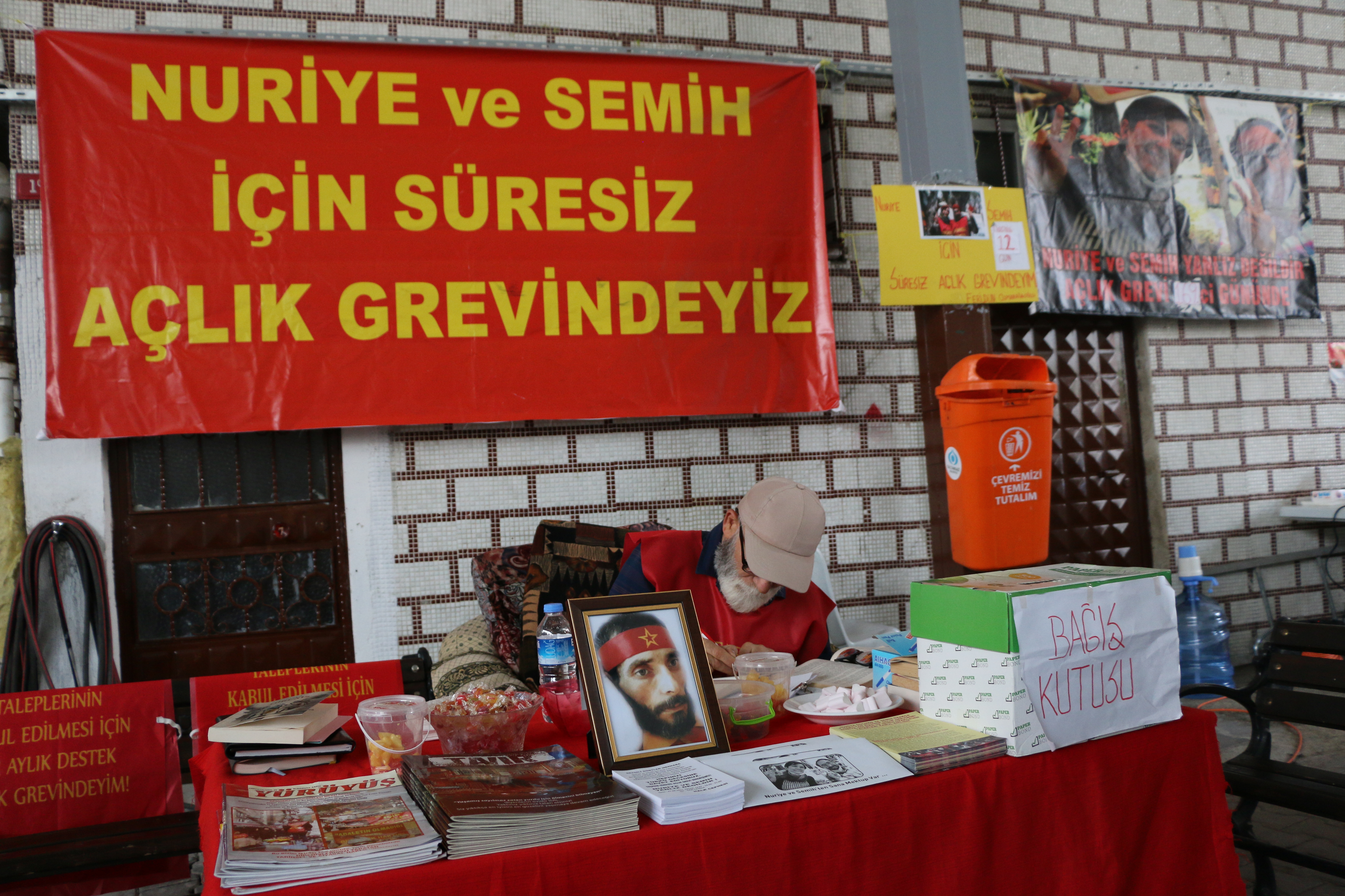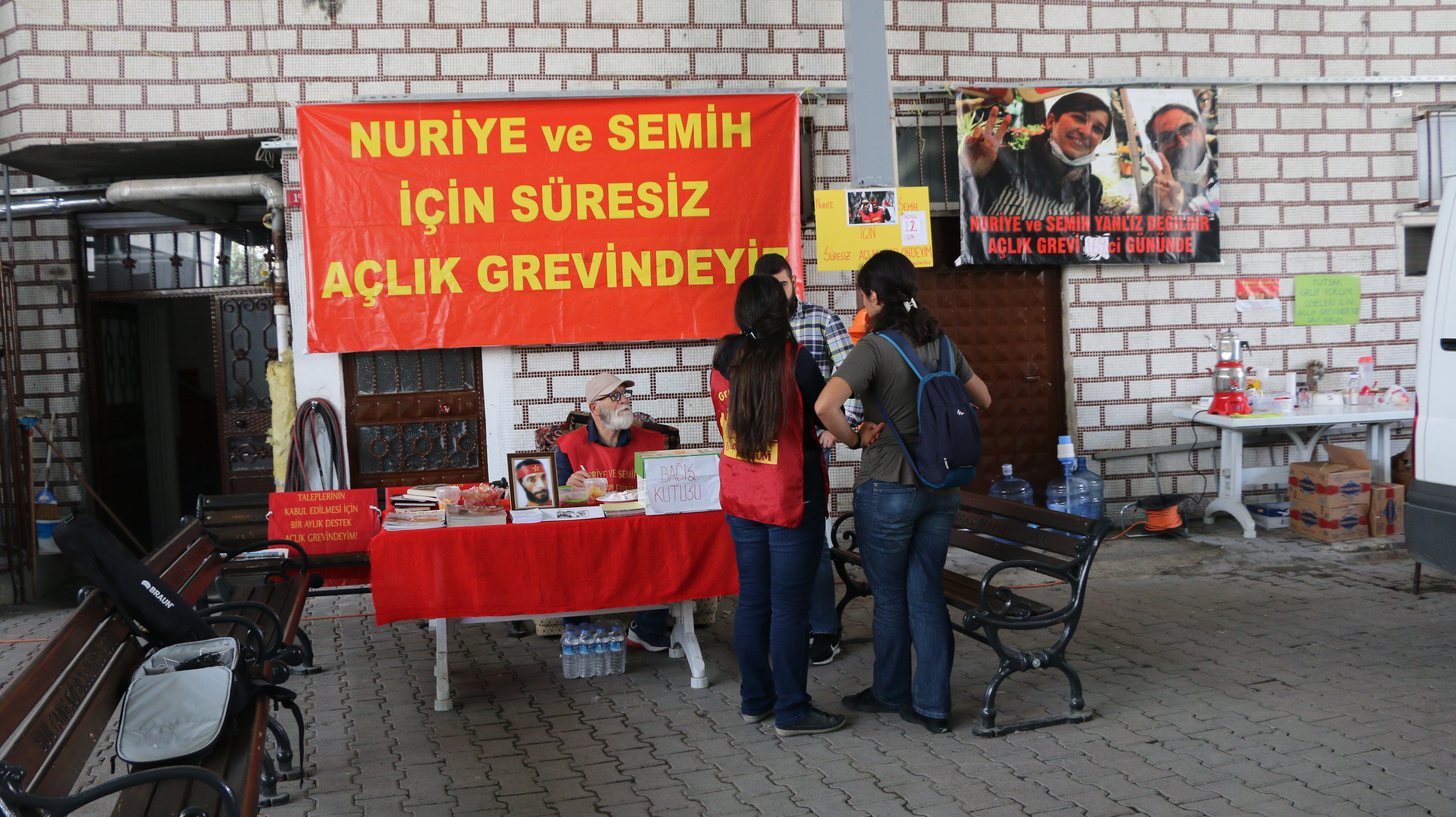 İstanbul Gazi Mahallesi’nde bulunan Gazi Cemevi bahçesinde, Akademisyen Nuriye Gülmen ve Öğretmen Semih Özakça’nın açlık grevine destek olmak için açlık grevi başlatan 67 yaşındaki Feridun Osmanoğlu ile birlikte üç kişinin açlık grevi 13. gününde. Cemevi bahçesinin duvarlarına astıkları “Nuriye ve Semih için süresiz açlık grevindeyiz” pankartı ve Nuriye ve Semih’in fotoğrafları yer alıyor. Eylemcileri, gün içinde çok sayıda insan ziyaret edip destek veriyor.