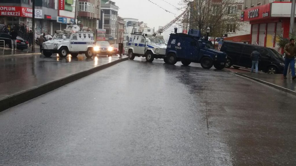 Anma için yürüyüşe geçenlere izin vermeyen polis yolu akrep ile kapattı.