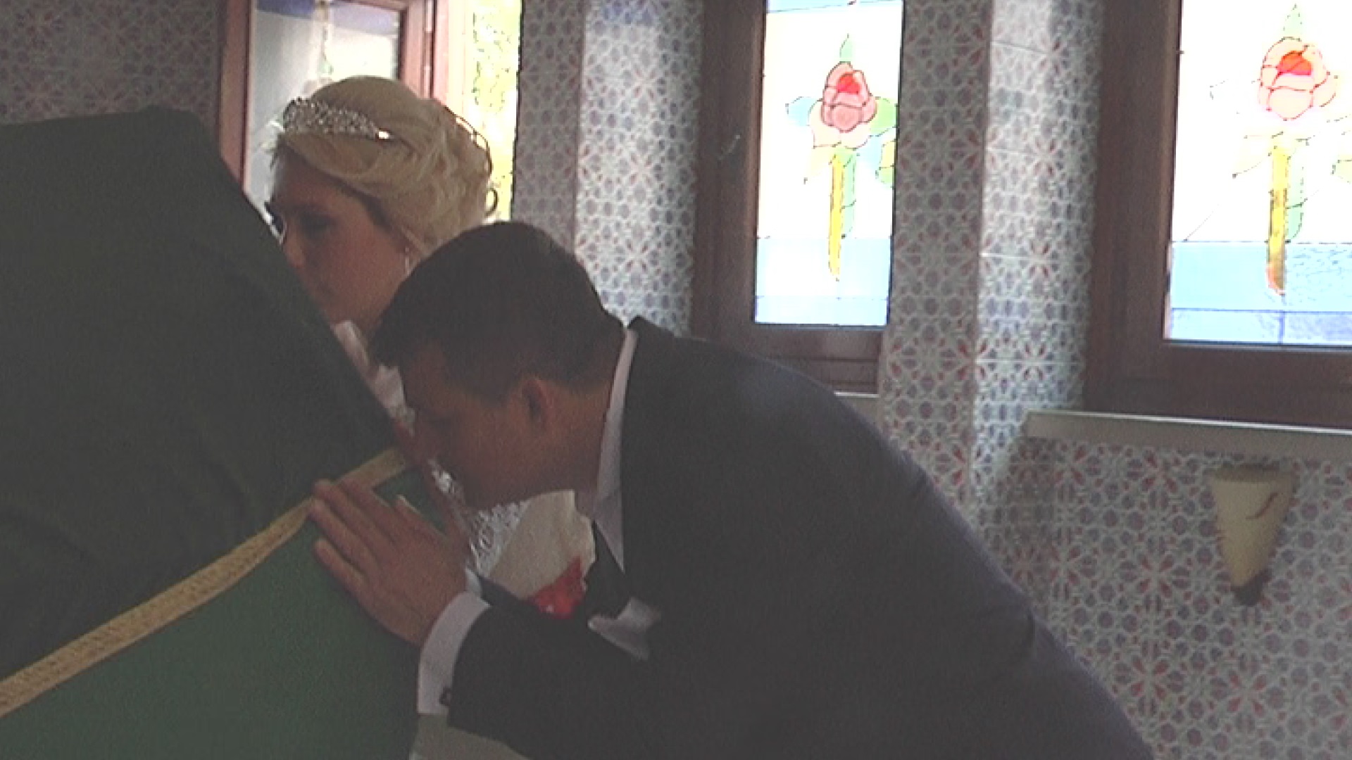Malatya Pötürgeli olan gelin adetleri gereği evlenmeden önce Garip Dede Türbesi’ne niyaz olmaya gelmiş. Şükran Aydın, “Niyaz olduktan sonra dede nikahına başlıyoruz. Bu bizim kendi kültürümüz” dedi.