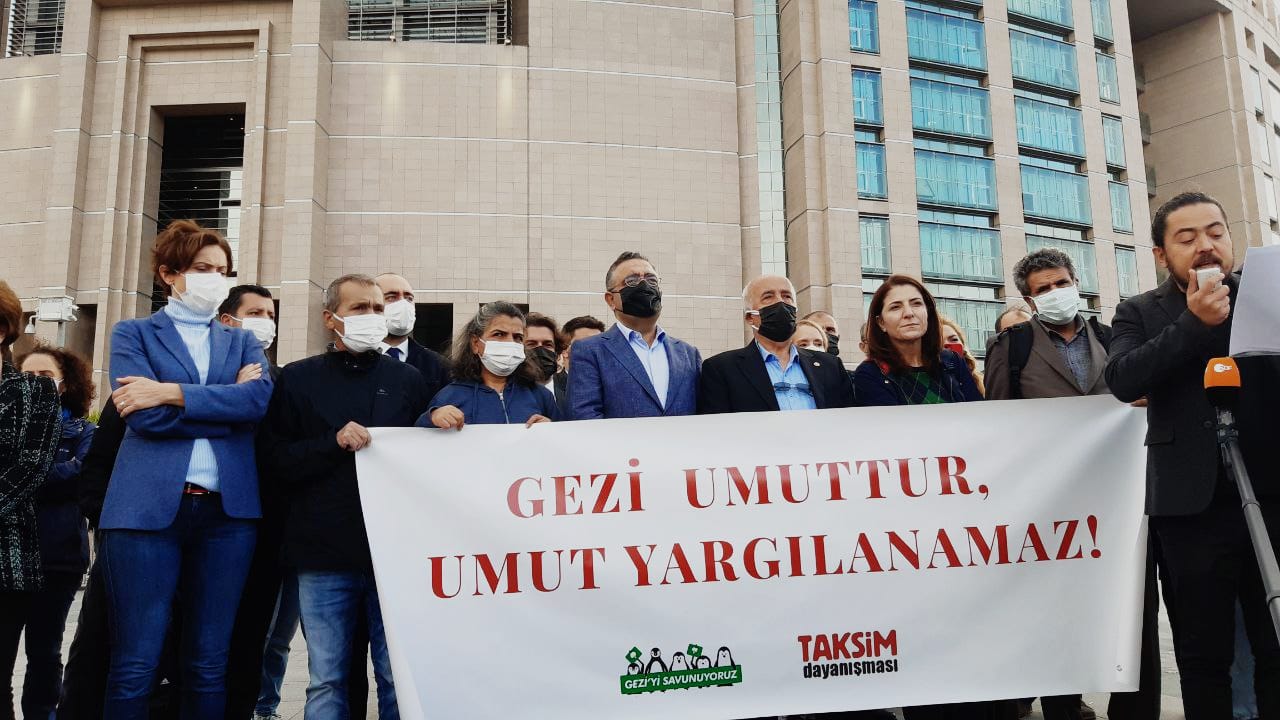 “Ülkemizin toplum, kent ve demokrasi tarihinin en parlak, en onurlu sayfalarından biri olan Gezi Direnişi, Anayasal bir zeminde gerçekleştiği yargı kararlarıyla iki kez tescil edilmesine rağmen, hukuka ve gerçeğe aykırı, tümüyle mesnetsiz iddialarla, üçüncü kez yargılanmak isteniyor. Toplumsal muhalefetin en temel hak ve talepleri suç unsuru gibi gösterilmek, barışçıl direnişin tarihsel ve meşru gerçekliği ısrarla çarpıtılmak, karalanmak isteniyor. Sonunu bildiğimiz bir film, aynı kurgu iddialar ve figüran tanıklarıyla yeniden gösterime alınmak isteniyor.