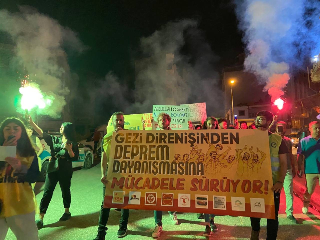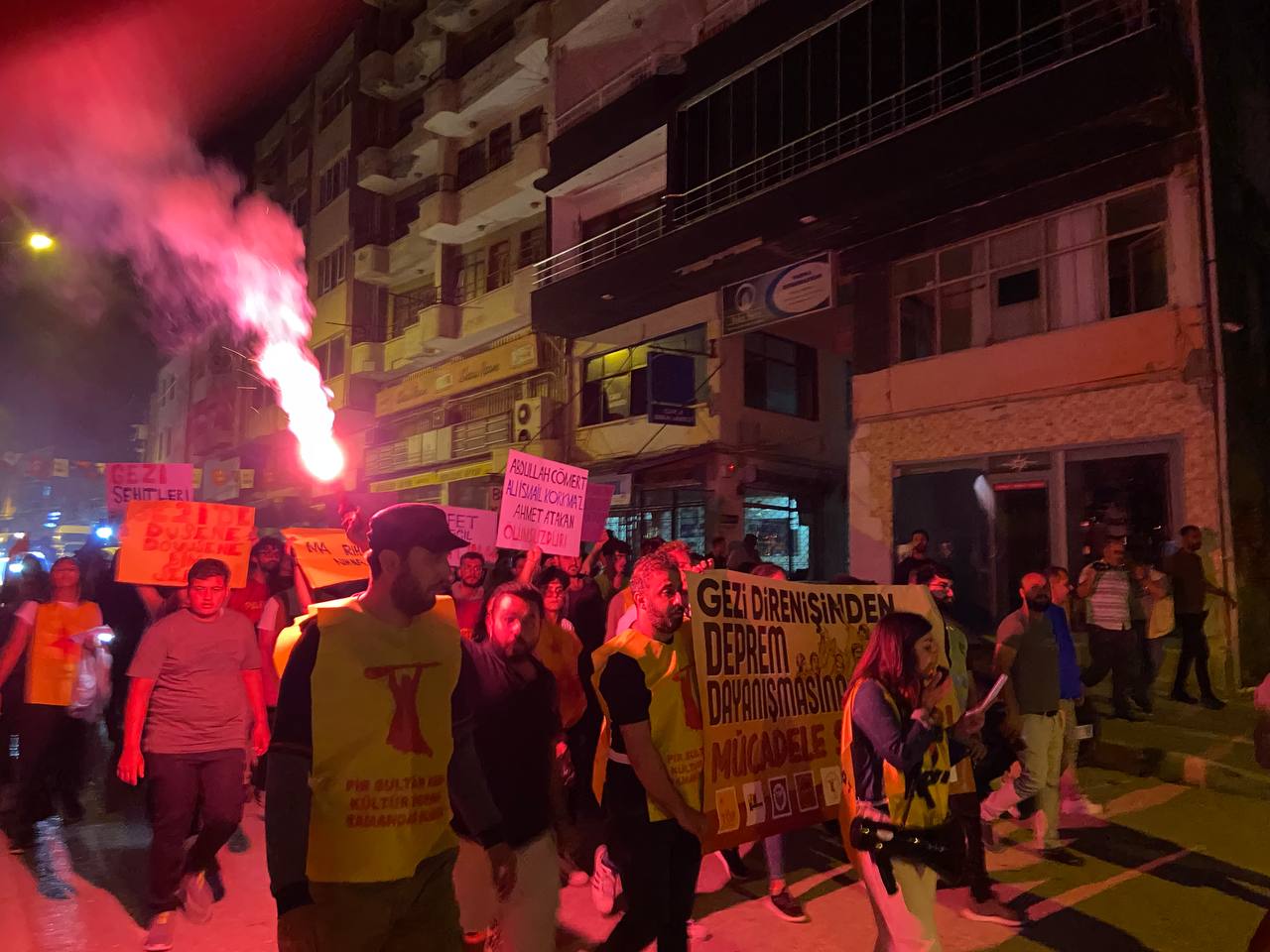 Yeni Demokrasi Gazetesi’nde yer alan habere göre, aralarında Pir Sultan Abdal Kültür Derneği, Partizan okurları, Dayanışma Evleri ve birçok kurumun da bulunduğu kortej, Abdullah Cömert alanında toplanarak meşale ve mumlarla Gezi’de ölümsüzleşenleri andı. Depremin 122. gününde yapılan yürüyüşte dayanışma ve direnişe vurgu yapan kitle, yeniden inşanın sözünü yineledi. Yürüyüş boyunca Gezi direnişinde ölümsüzleşenlerin isimleri okundu.