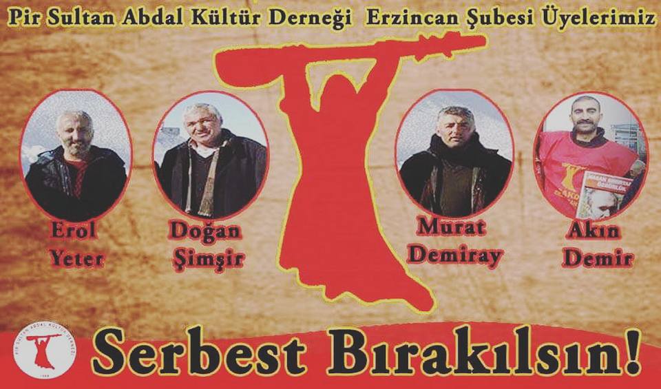 Geçtiğimiz günlerde Pir Sultan Abdal Kültür Derneği (PSAKD) Erzincan Şube Yöneticisi Akın Demir, PSAKD üyeleri Murat Demiray ve Doğan Şimşir’in de aralarında bulunduğu 10 kişi gözaltına alınmıştı.