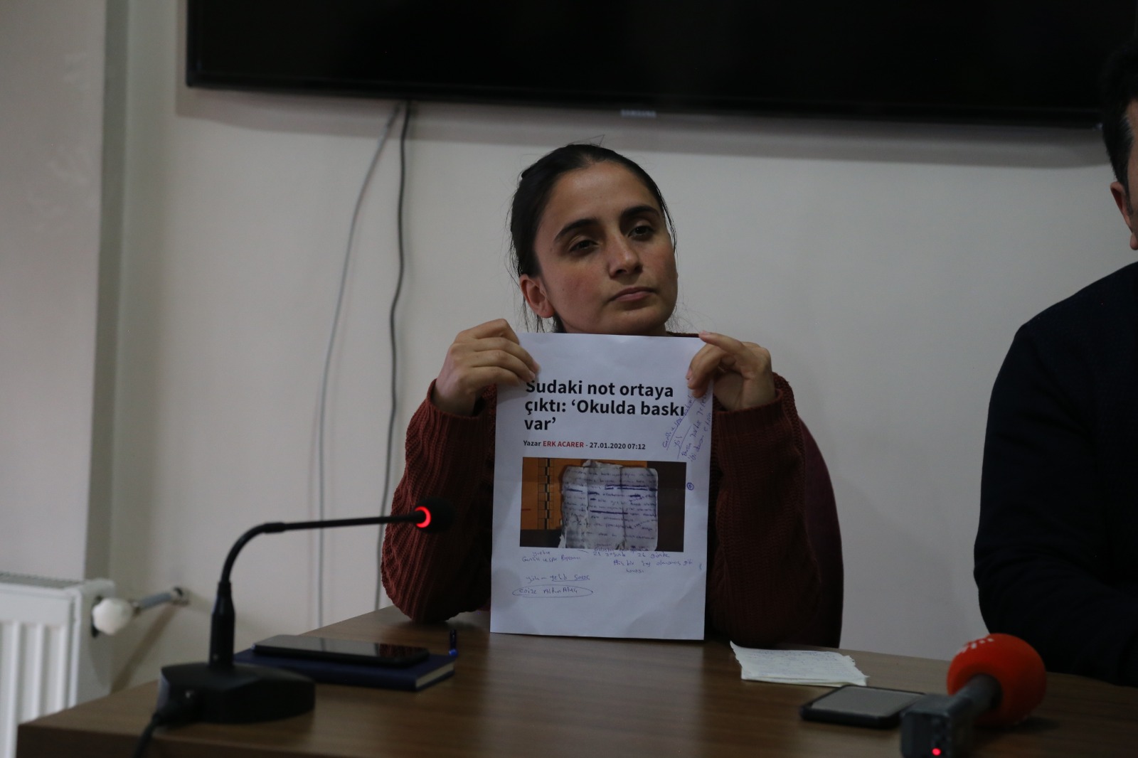 Açıklamada ilk olarak konuşan Gülistan Doku’nun ablası Aygül Doku, teknik olarak çalışmaların devam ettiğini söyledi. Adli boyutta eksikliklerin olduğunu belirten Doku, başsavcıyla görüştüklerini, fakat Zaynal Abarok’un ifadelerinden tatmin olmadıklarını aktardı. Abla Doku, “Başsavcılık Zaynal’ın ailesini kendi gözetimi altında alacağını, ifadelerinde sadece ‘eve geldik sadece cay içtik değil’ ayrıntılı bir şekilde inceleyeceğini dair söz verdi. Aile olarak bu söze güvenmek istiyoruz. Bir mevzuda okula geç kaldığı için 5 lira alma meselesi. Bunun yanlış olduğunu söyleyerek 2 kere dilekçe sunuluyor. Sudan bu not çıkıyor. Bu hocada benim kardeşimin o kadar psikolojisini bozmuş ki cebinde taşıyor. Gülistan intihar etmiştir dediklerinde ben inanmıyordum. Zaynal, ailesi ve okulda öğretmeniyle yaşadığı sorun Gülistan’ın psikolojisinin bozulduğunun göstergesidir. Eğer Gülistan o suya atlamışsa intihar nedenlerini araştırılması gerekiyor. Gülistan suya atlamamıştır. Gülistan’ı suya bunlar atmıştır” dedi.
