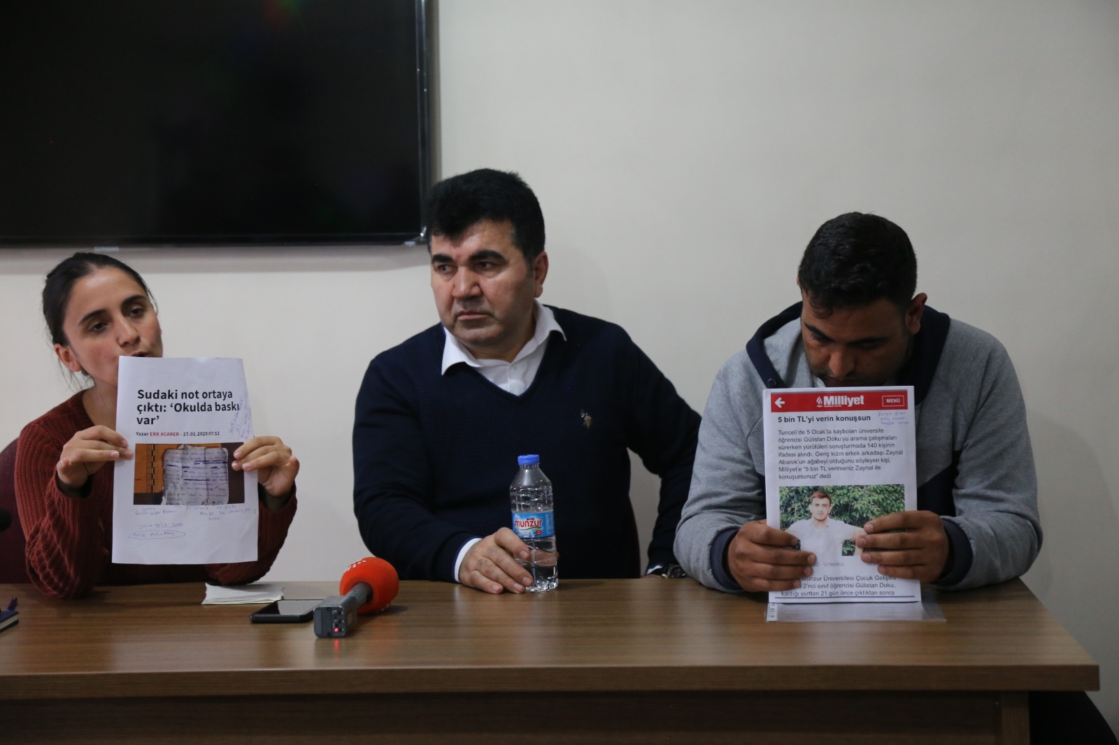 Dersim’de 5 Ocak’tan bu yana kendisinden haber alınamayan Munzur Üniversitesi öğrencisi Gülistan Doku’nun bulunması için yapılan çalışmalara rağmen herhangi bir iz bulunamamasına ilişkin ailesi ve Dersim Barosu basın açıklaması yaptı. Baroda yapılan açıklamaya Baro Başkanı Kenan Çetin, bir çok siyasi partiler ve kurum katıldı.