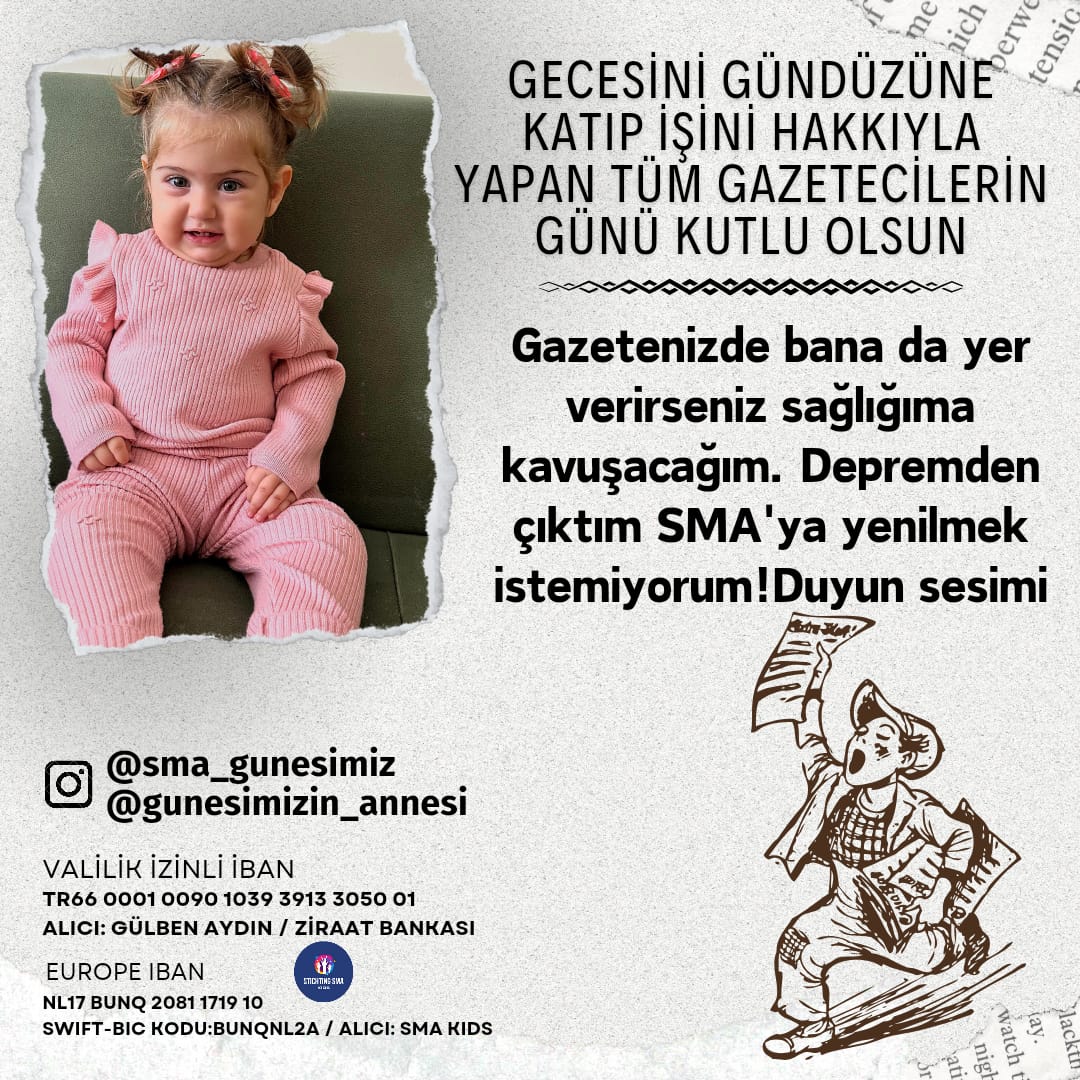 PİRHA- 6 Şubat depremlerinde hayatta kalmayı başaran Güneş bebek, SMA hastalığıyla mücadele ediyor. Güneş bebeğin tedavisine dönük gerekli para için kampanya yürütülürken, sanatçılar Altan Erkekli ve Füsun Demirel kampanyaya destek olunması çağrısında bulundu.