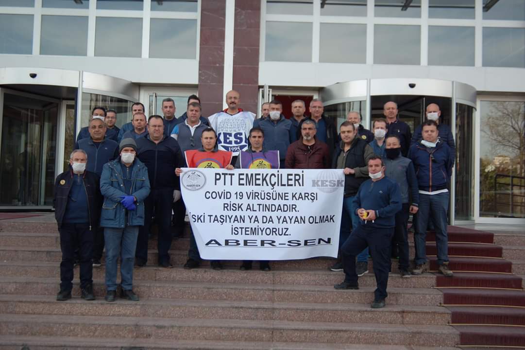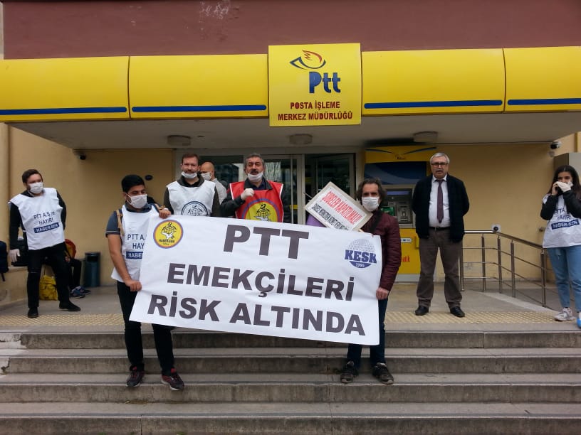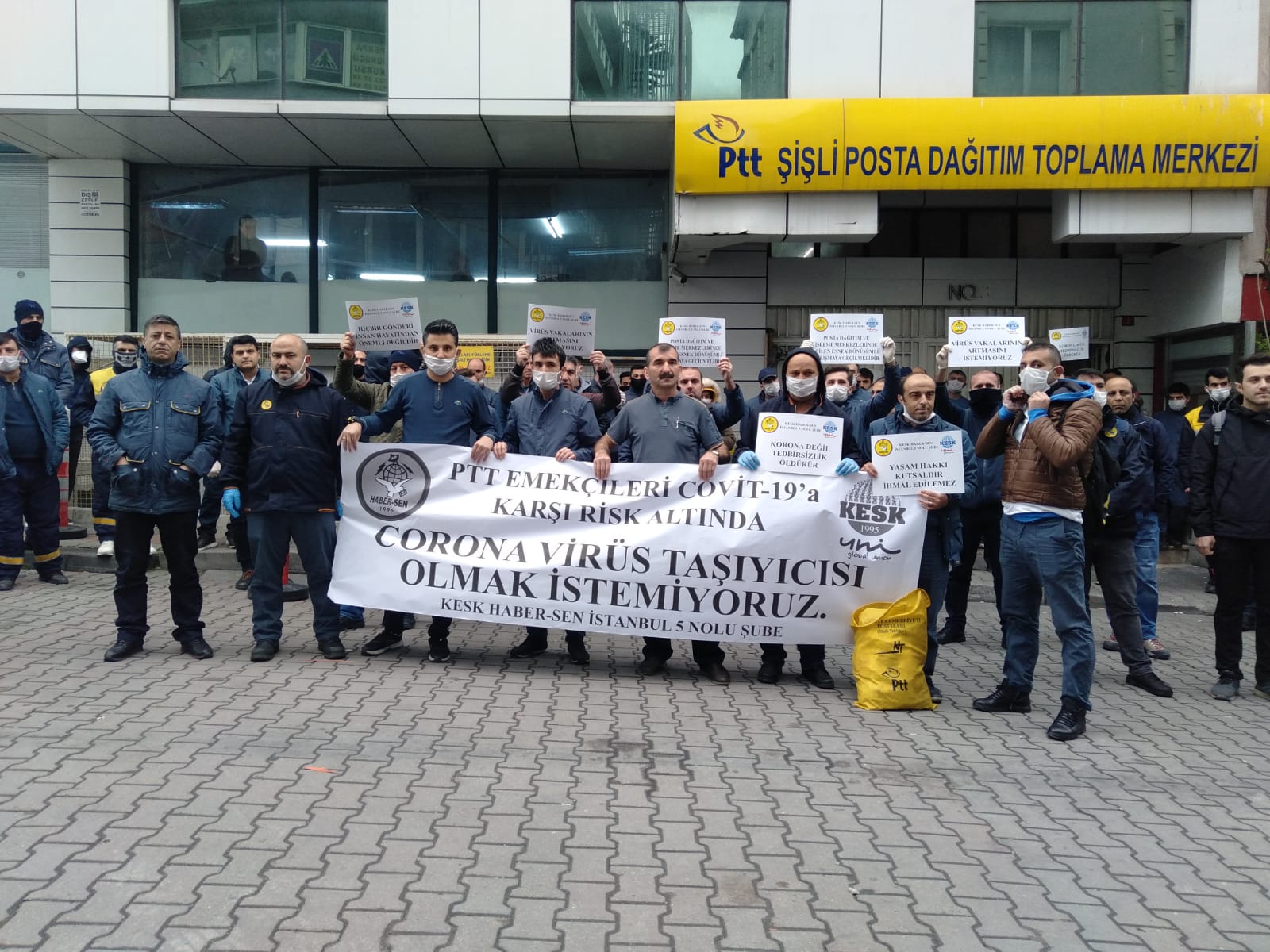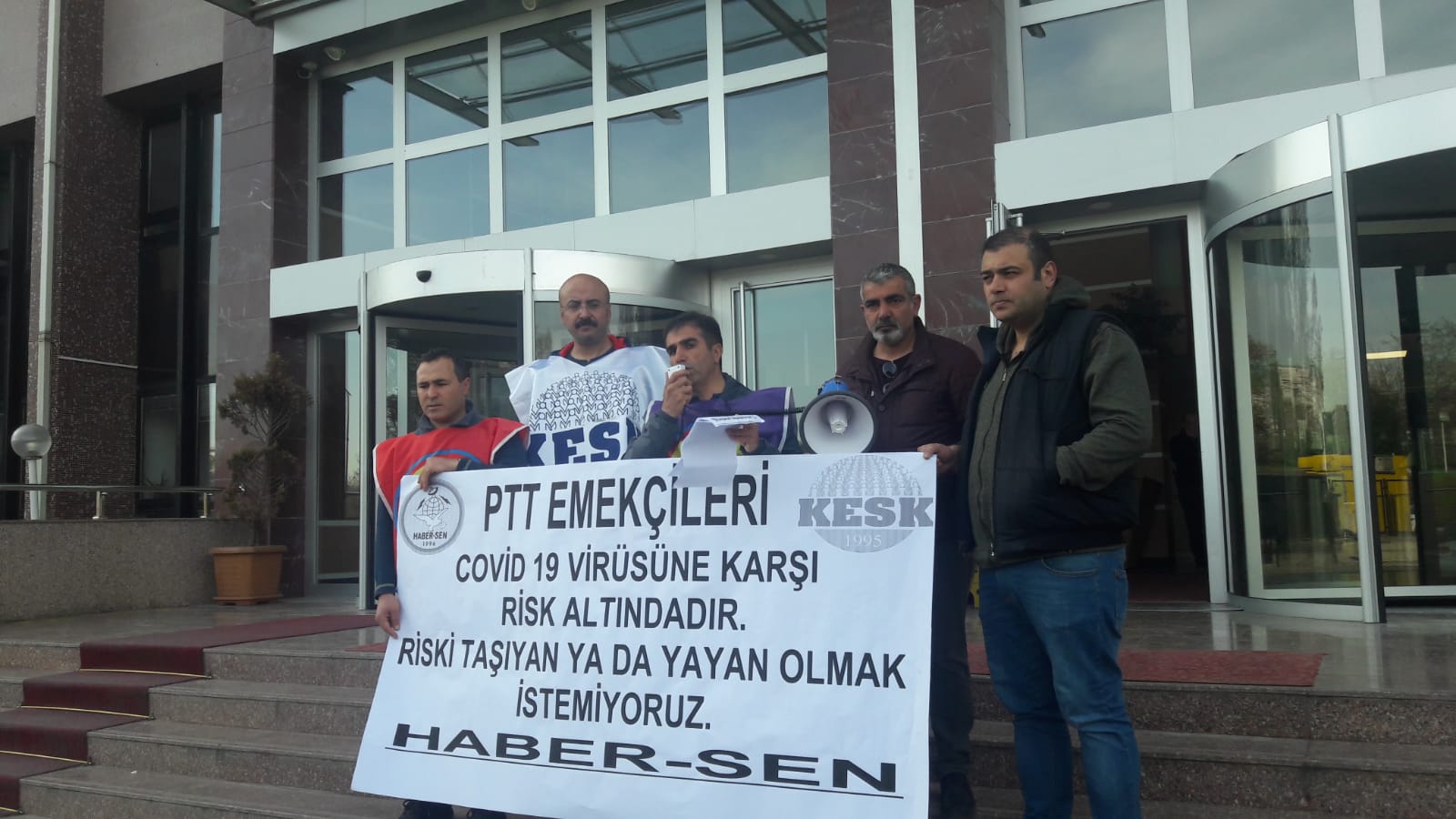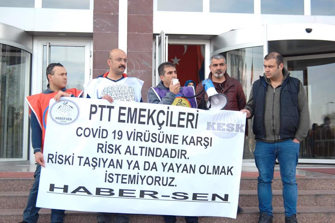 Tüm dünyayı etkisine alan ve her geçen gün bilançonun ağırlaşmasına neden olan koronavirüs salgını işçi ve emekçileri de olumsuz yönde etkiliyor. Sağlık emekçilerinin yanında en riskli çalışma grubu içinde yer alan PTT çalışanlarının örgütlü olduğu Basın Yayın İletişim ve Posta Emekçileri Sendikası (Haber-Sen) koronavirüs salgını sürecinde emekçilere yönelik duyarsızlık olduğunu belirterek birçok merkezde açıklama yaptı.