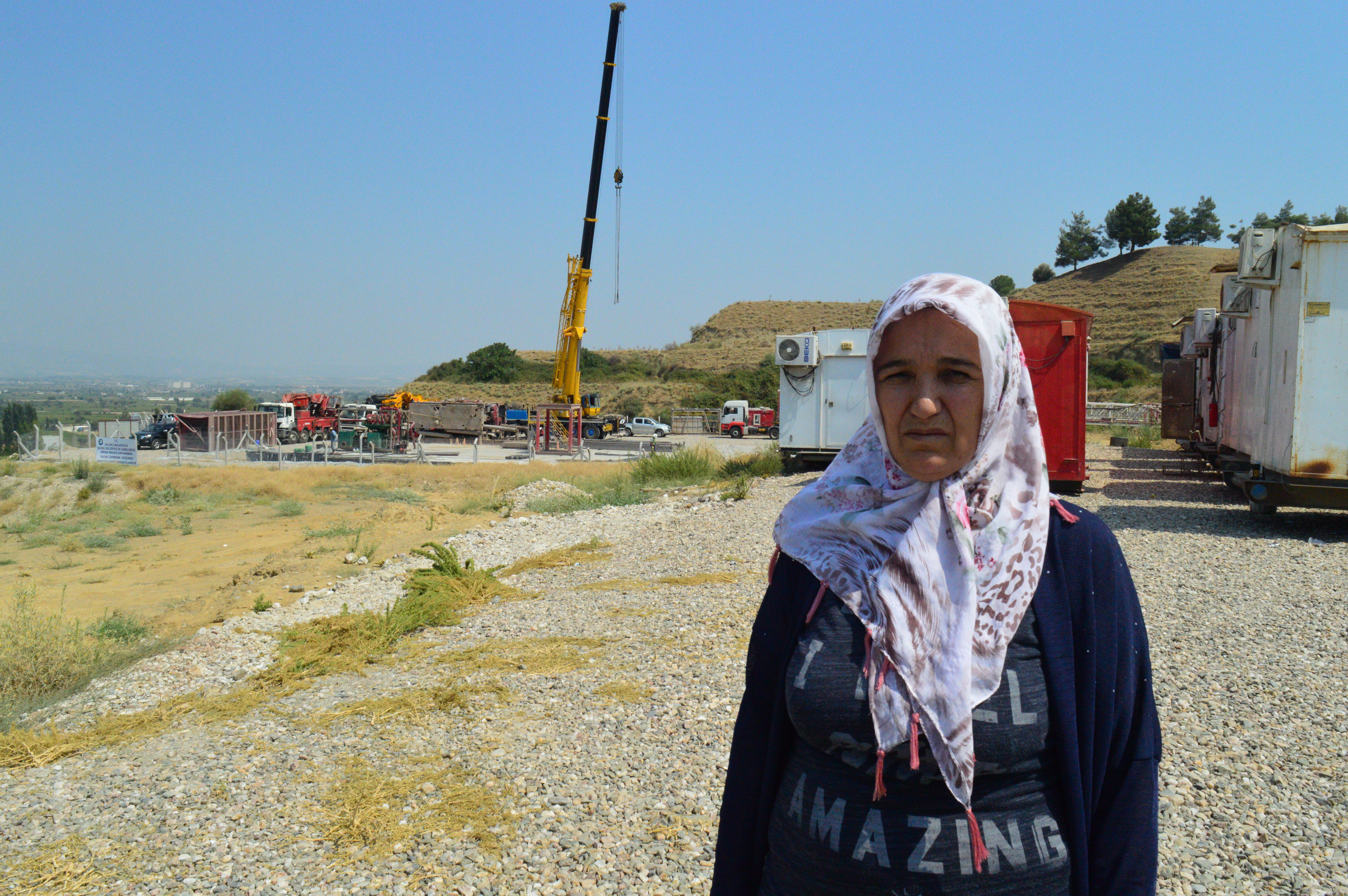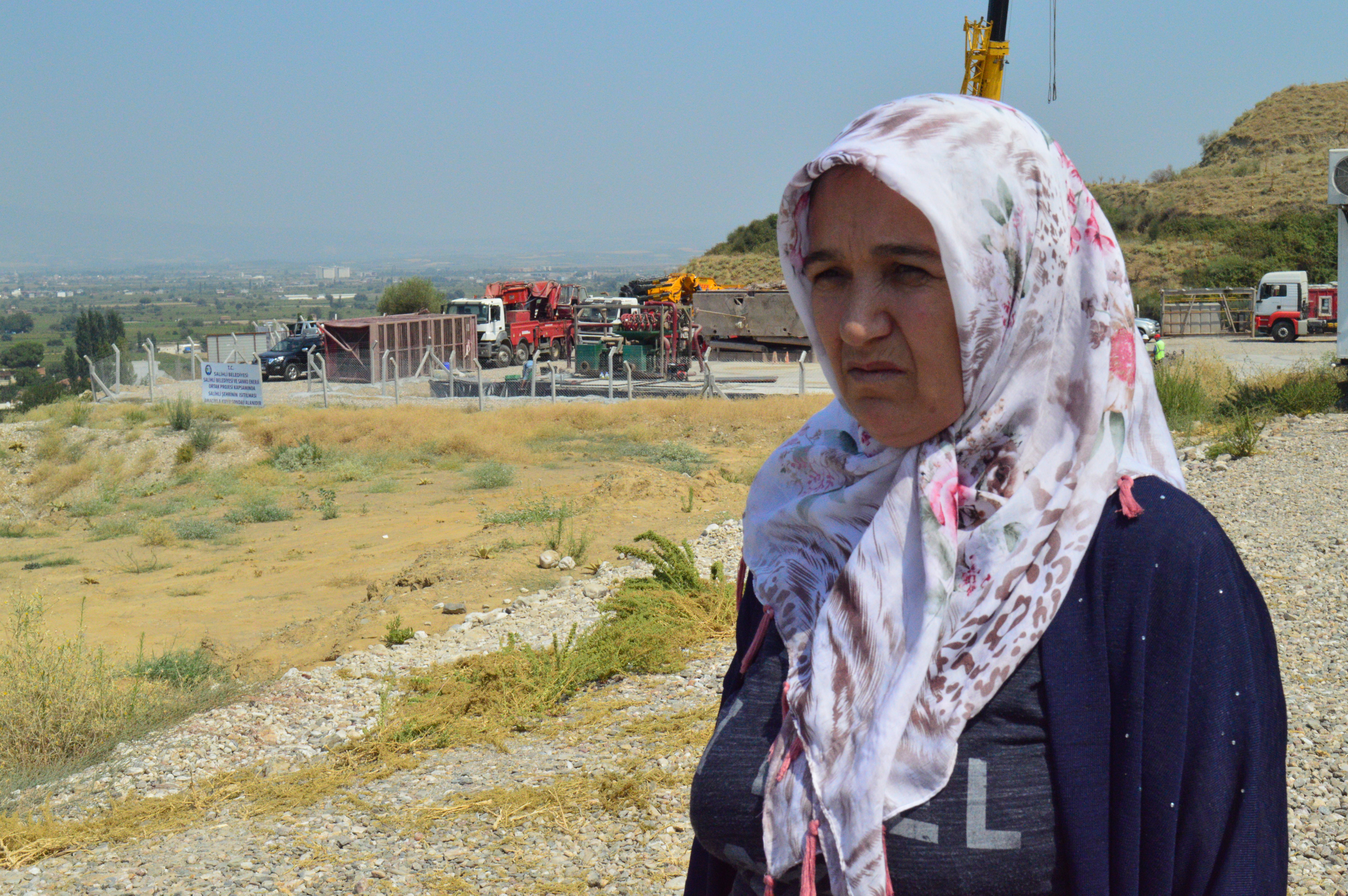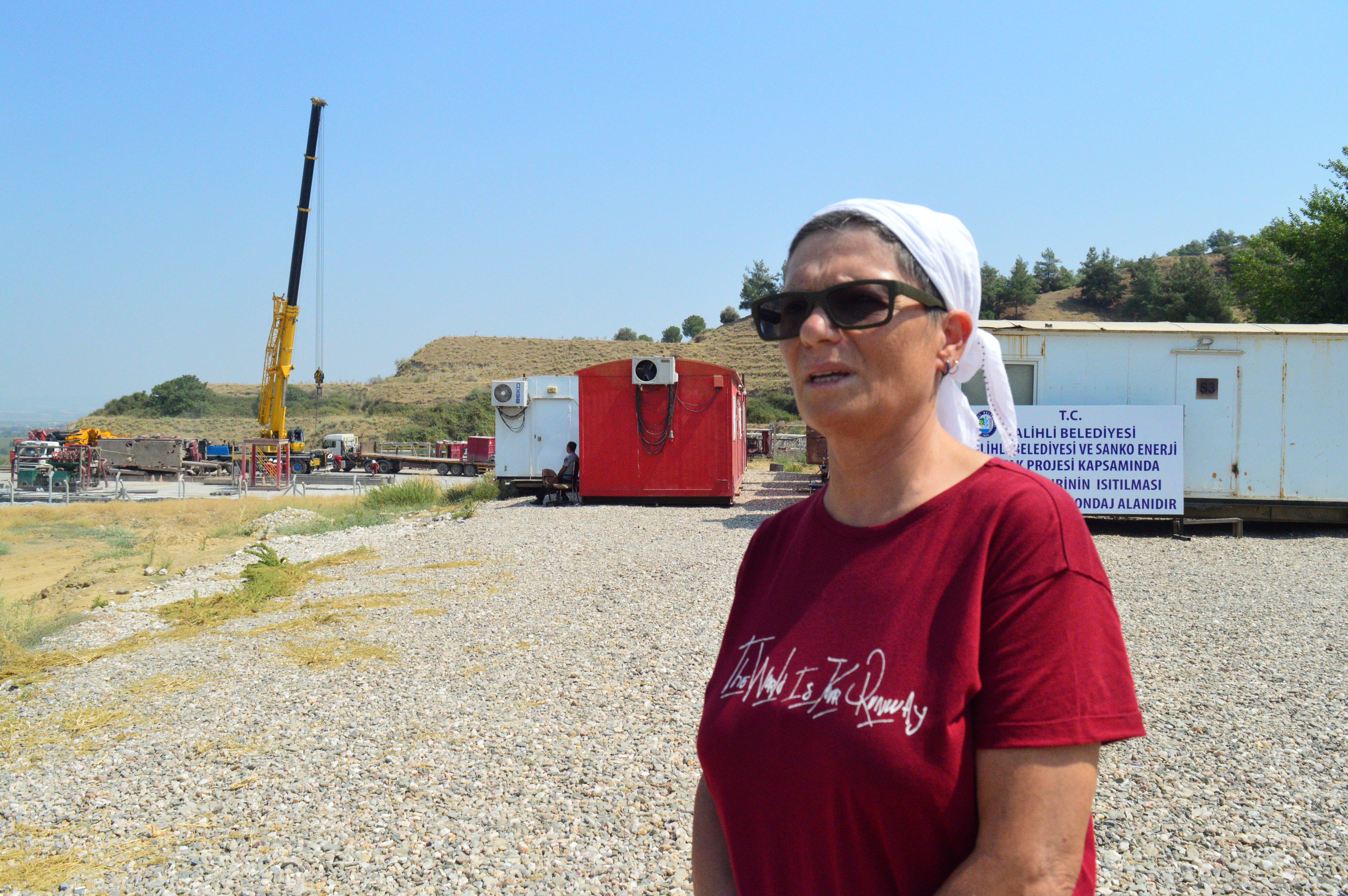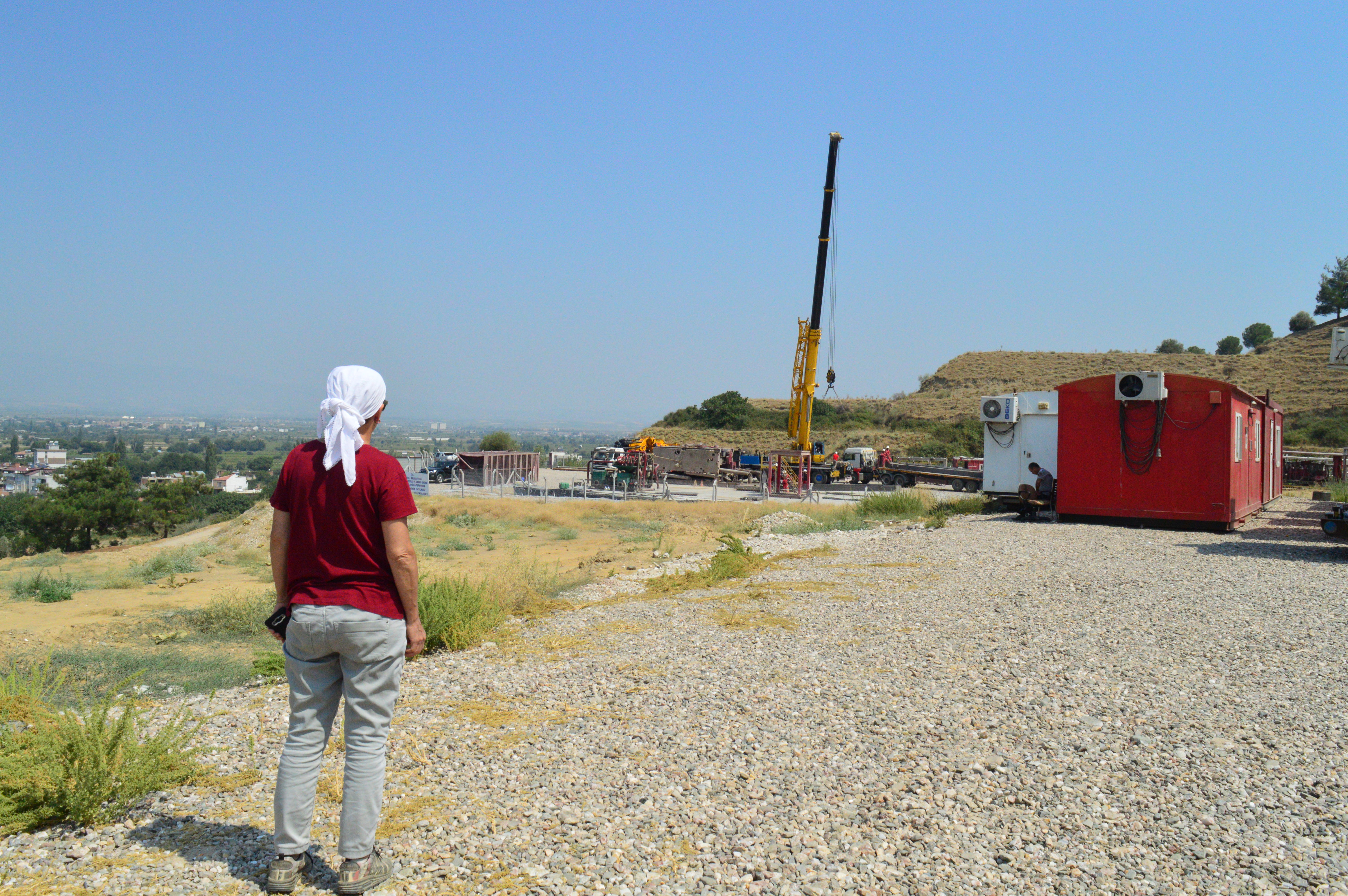 Salihli Çevre Derneğinden Hülya Taşar‘ı direniş alanında yapılan çalışmaları izlerken görüntüledik. SANKO firmasının sabah çalışmaya başlamasını göz yaşları içinde izlediğini söyleyen Taşar, kuyu açılan yerin belediye imar planında yeşil alan olduğuna dikkat çekti.