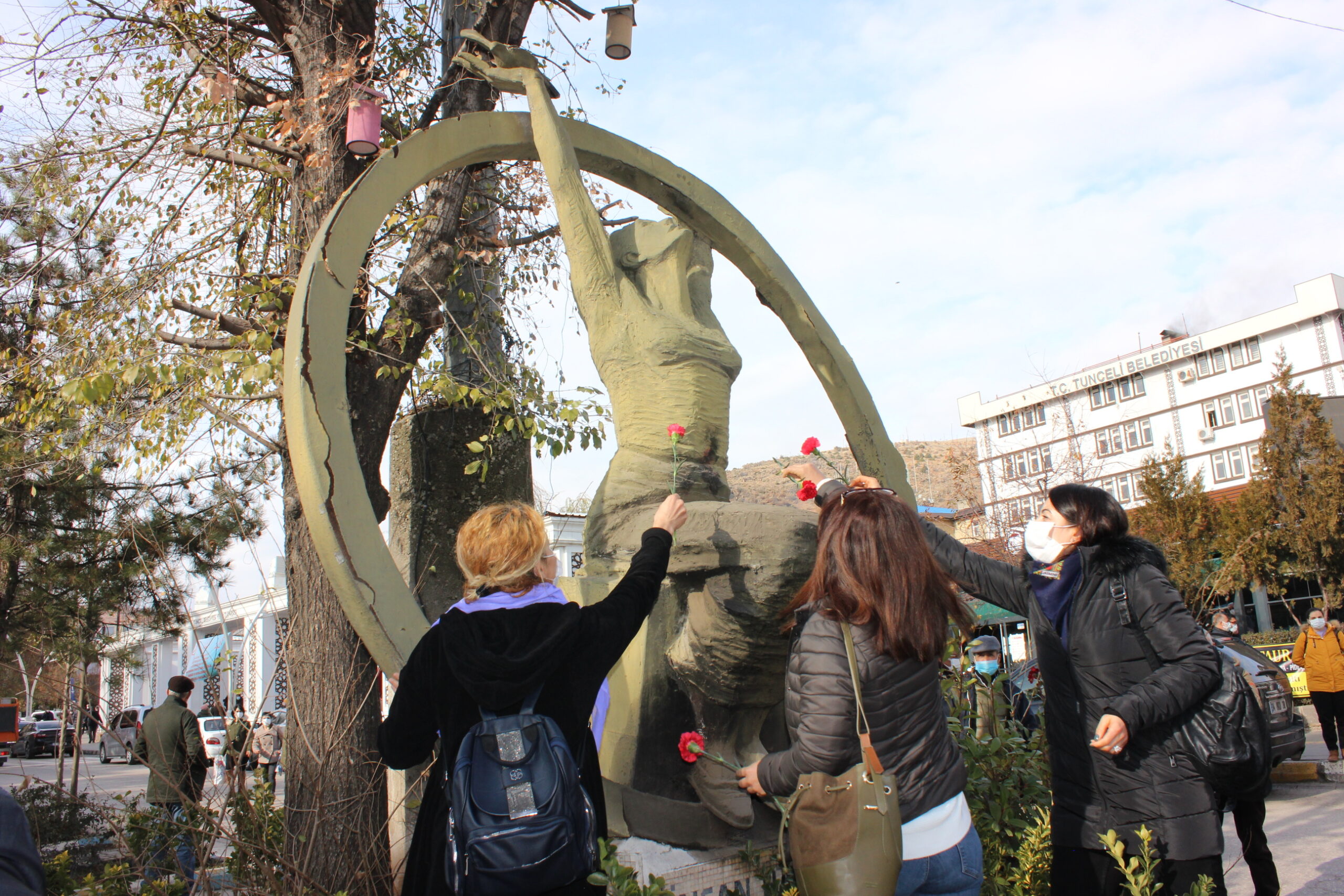 Basın açıklaması özgürlük anıtına karanfil bırakıldıktan sonra bitirildi.