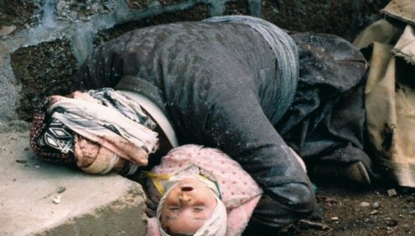 En az 5 bin kişinin zehirli gazlarla öldürüldüğü Halepçe Katliamı, İran-Irak savaşı döneminde Saddam Hüseyin tarafından 1986-1988 yılları arasında Kürtlere karşı El-Enfal Harekatı adını verdiği soykırım operasyonunun sonucu olarak yaşandı. 1988 Mart ayında İran ordusu, peşmergelerle iş birliği yaparak Kürtlerin yaşadığı Halepçe kasabasına girdi ve Halepçe’de isyan başladı. Saddam Hüseyin de Korgeneral Ali Hasan al-Majid al-Tikriti’ye (Kimyasal Ali) zehirli gaz bombalarını kullanma emri verdi. Irak-İran sınırında bulunan Halepçe’de 16 Mart 1988’de eşine az rastlanır bir katliam yapıldı. Elma kokusu olan zehirli gaz bombalarını taşıyan 8 MiG-23 uçağı Halepçe’yi 3 gün boyunca bombaladı.