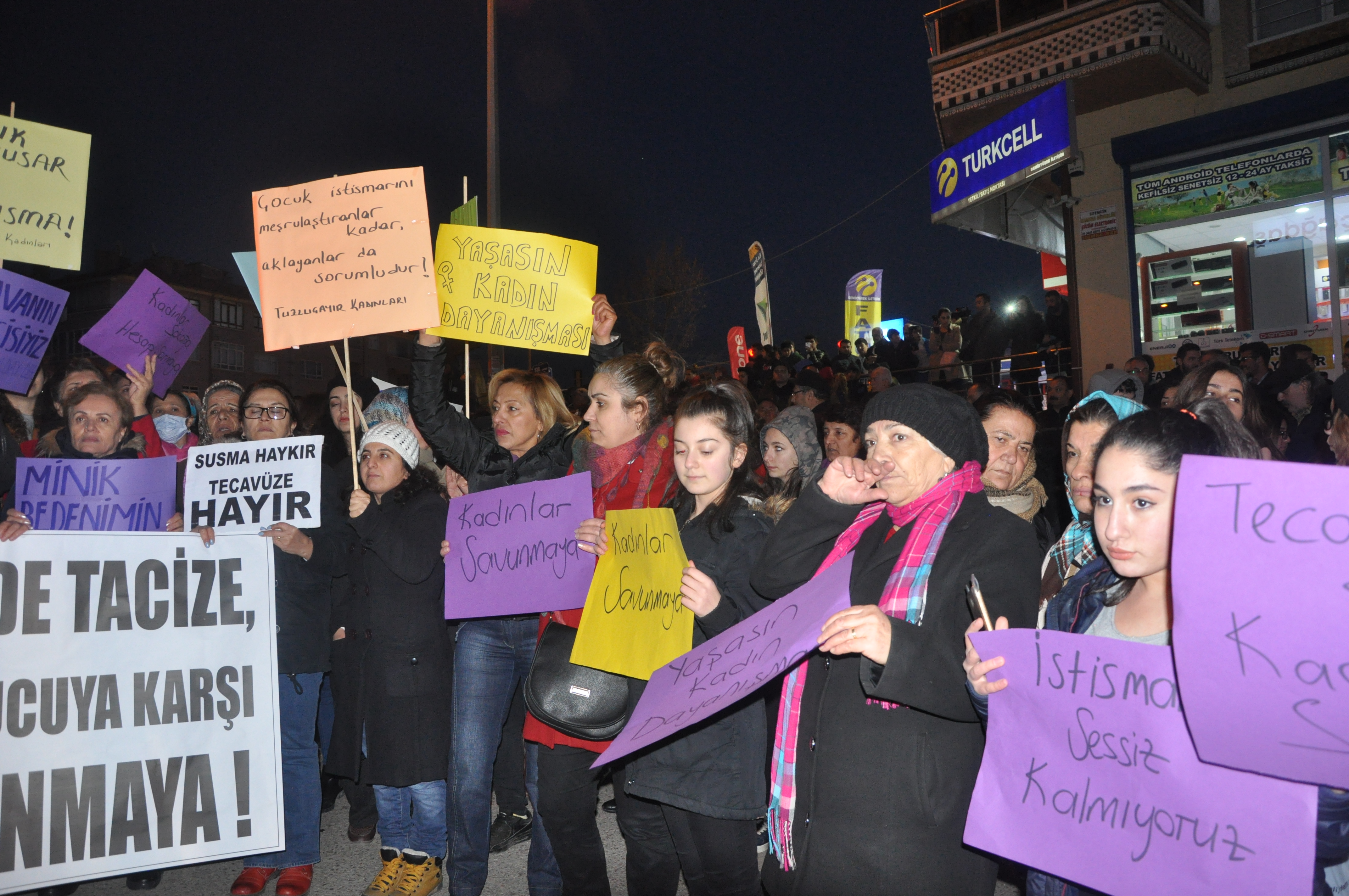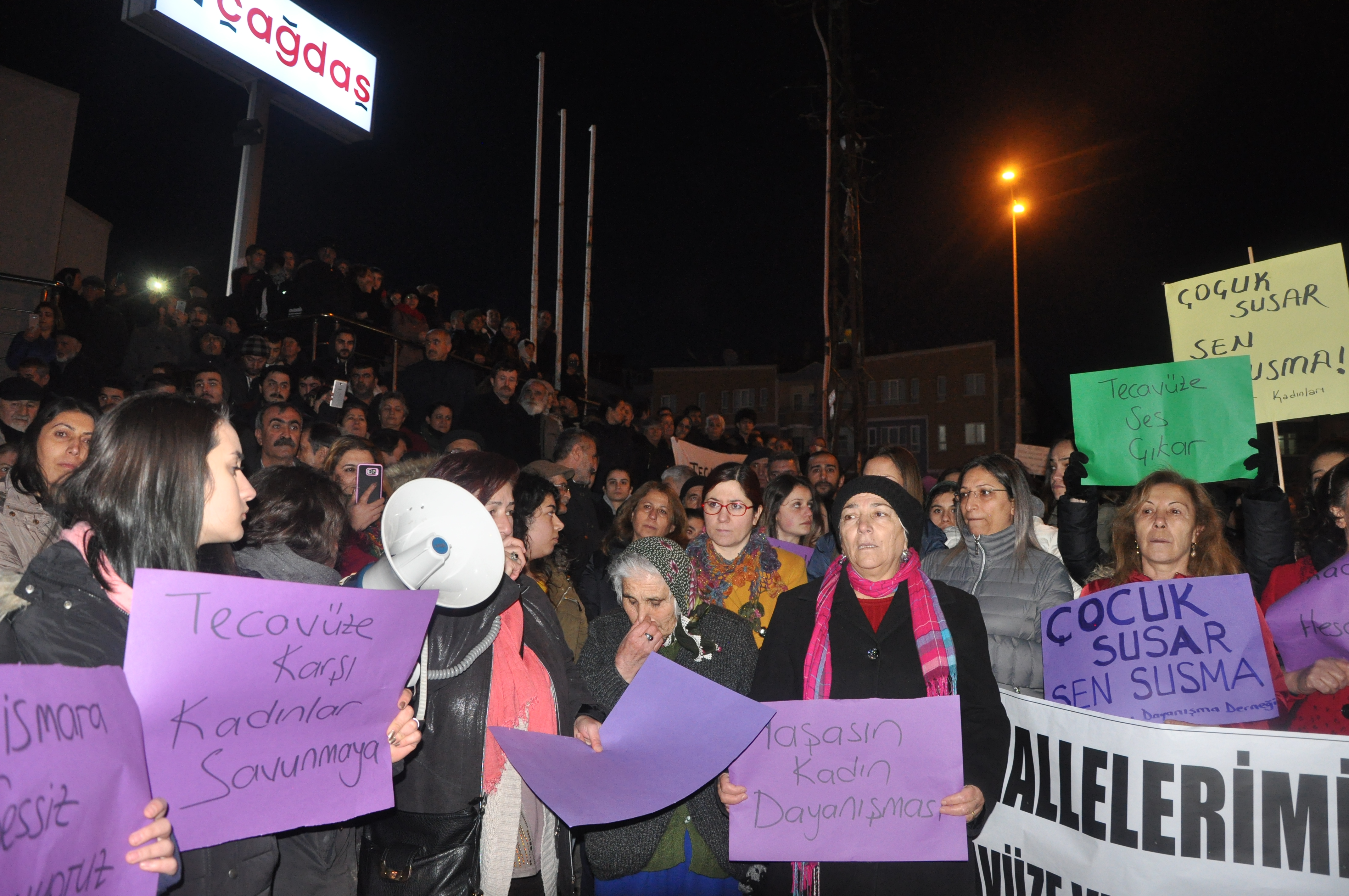 “Bir taraftan bunlar yaşanırken kadınlara cephesinden ise her geçen dün daha da güçlenen dayanışma sayesinde tacizcilerden, tecavüzcülerden ve istismarcılardan hesap soruyoruz. Bir kişi daha eksilmeyeceğiz diyerek ortaya koyduğumuz irademiz, polisin bir hafta boyunca bulamadığı istismarcıyı 24 saat geçmeden buluyoruz. Artık yaşadığımız şiddeti kol kırılır yen içinde kalır diye saklamıyoruz. Biliyoruz ki yaşadığımız şiddetten de tacizden de biz sorumlu değiliz. Kadın ile erkeği eşit göremeyen zihniyetin her istediği yapılabileceği sandığı yerde sesimizi daha gür bir sele yükseltiyoruz.”