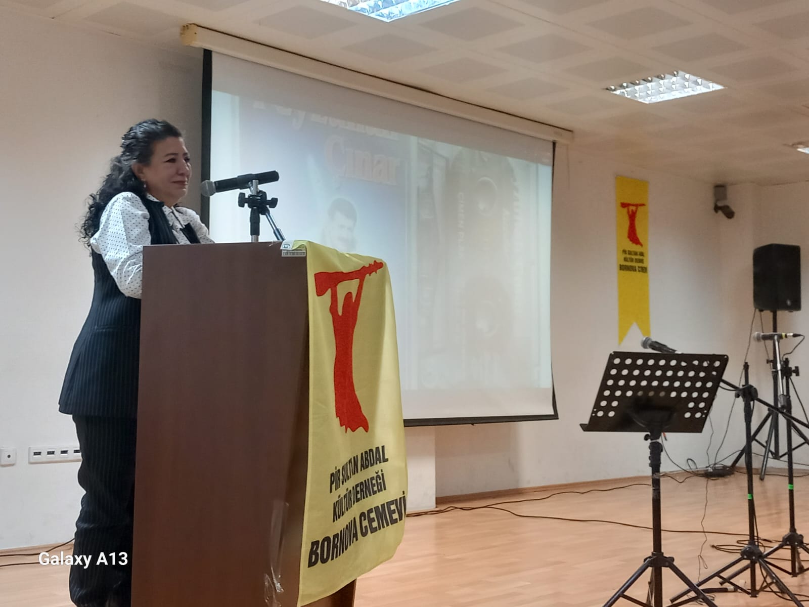 Anmada konuşan Bornova Cemevi Başkanı Barış Çelik, Feyzullah Çınar’ın ozanlık geleneğinin muhalif kimliğine vurgu yaparak, “Feyzullah Çınar sadece bir saz ustası, bir türkü söyleyeni değildi. O, halkın vicdanını dile getiren, Pir Sultan’ın, Nesimi’nin, Hallac-ı Mansur’un yolundan yürüyen bir hakikat eriydi. Sazını eline aldığında sadece ezgi değil, adalet, özgürlük ve eşitlik söylerdi. Her telde bir isyan, her sözde bir umut yankılanırdı. O, inancını saklamadan, korkmadan yaşayan bir Aleviydi. Düzeni değil, halkı savunan bir yürek taşıyordu. Ve bu yüzden kimi zaman yasaklandı, kimi zaman susturulmak istendi. Ama o hiçbir zaman susmadı” diye belirtti.