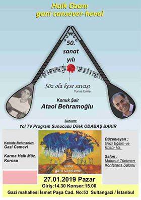 Gazi Eğitim ve Kültür Vakfı’nın düzenlediği konsere Gazi Cemevi ile Karma Halk Müziği Korosu da destek veriyor. Ayrıca konsere Ataol Behramoğlu da konuk şair olarak katılacak. (HABER MERKEZİ)