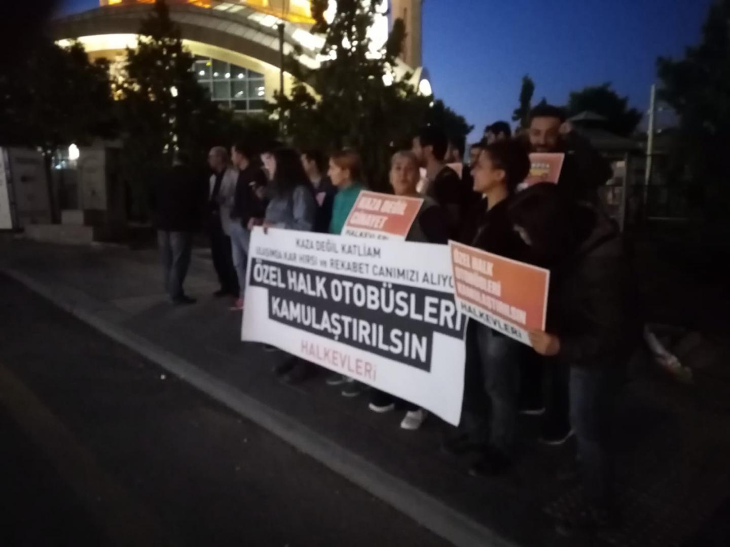 Olayın yaşandığı yerde toplanan Halkevleri üyeleri, benzer kazaların yakın tarihlerde yine yaşandığına dikkat çekerek “Bu yaşananı basitçe kaza olarak göremeyiz. Çünkü özel halk otobüslerinin Ankara’da ulaşım sistemi içerisine kar etme mantığını, rekabeti soktuğunu biliyoruz” denildi.