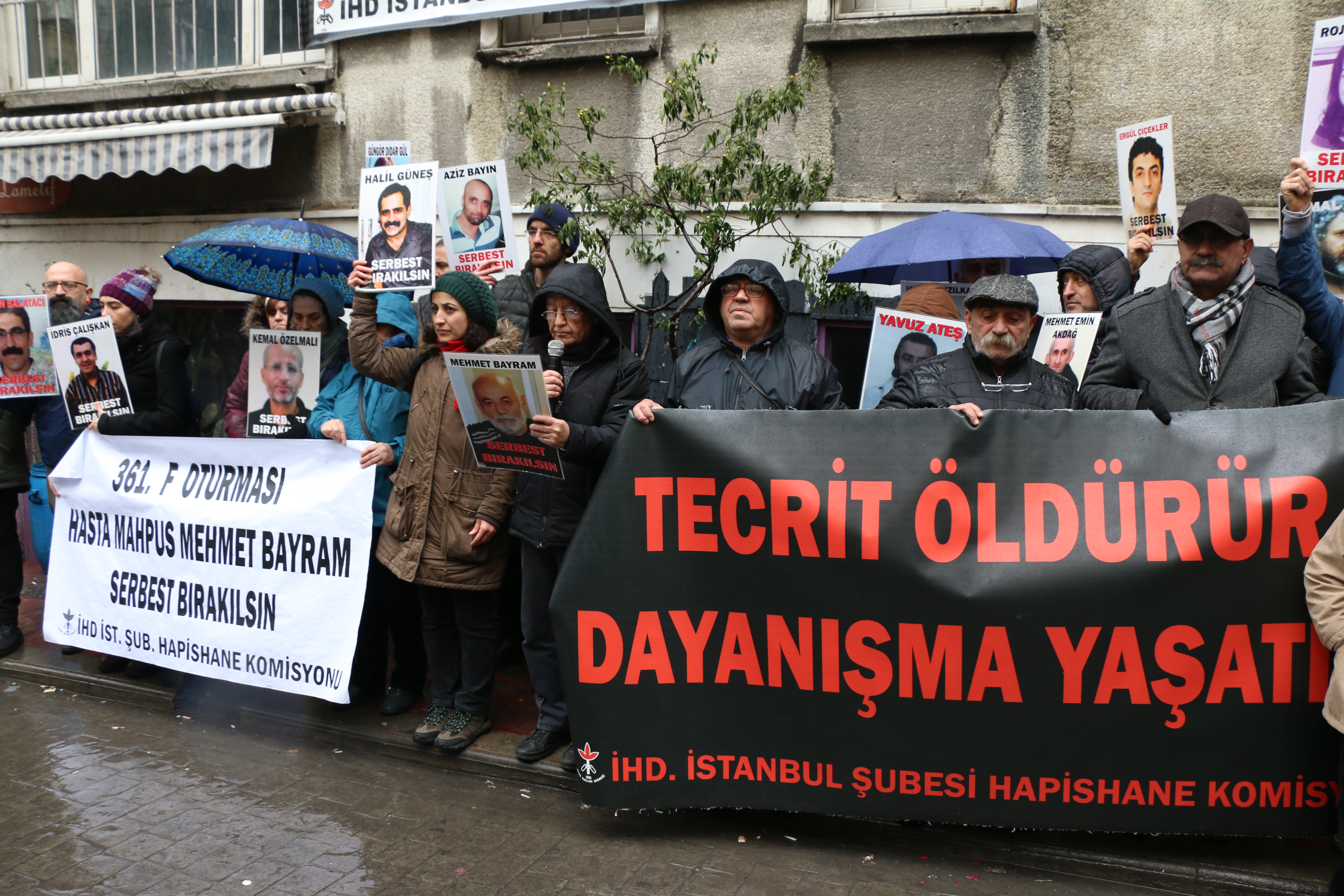 PİRHA- F Oturması eyleminin 361’inci haftasında kanser, kalp, böbrek, şeker, yüksek tansiyon gibi pek çok kronik hastalığı olan ve ileri yaşı nedeniyle hapishane koşullarından olumsuz etkilenen Mehmet Bayram’ın serbest bırakılması talep edildi.