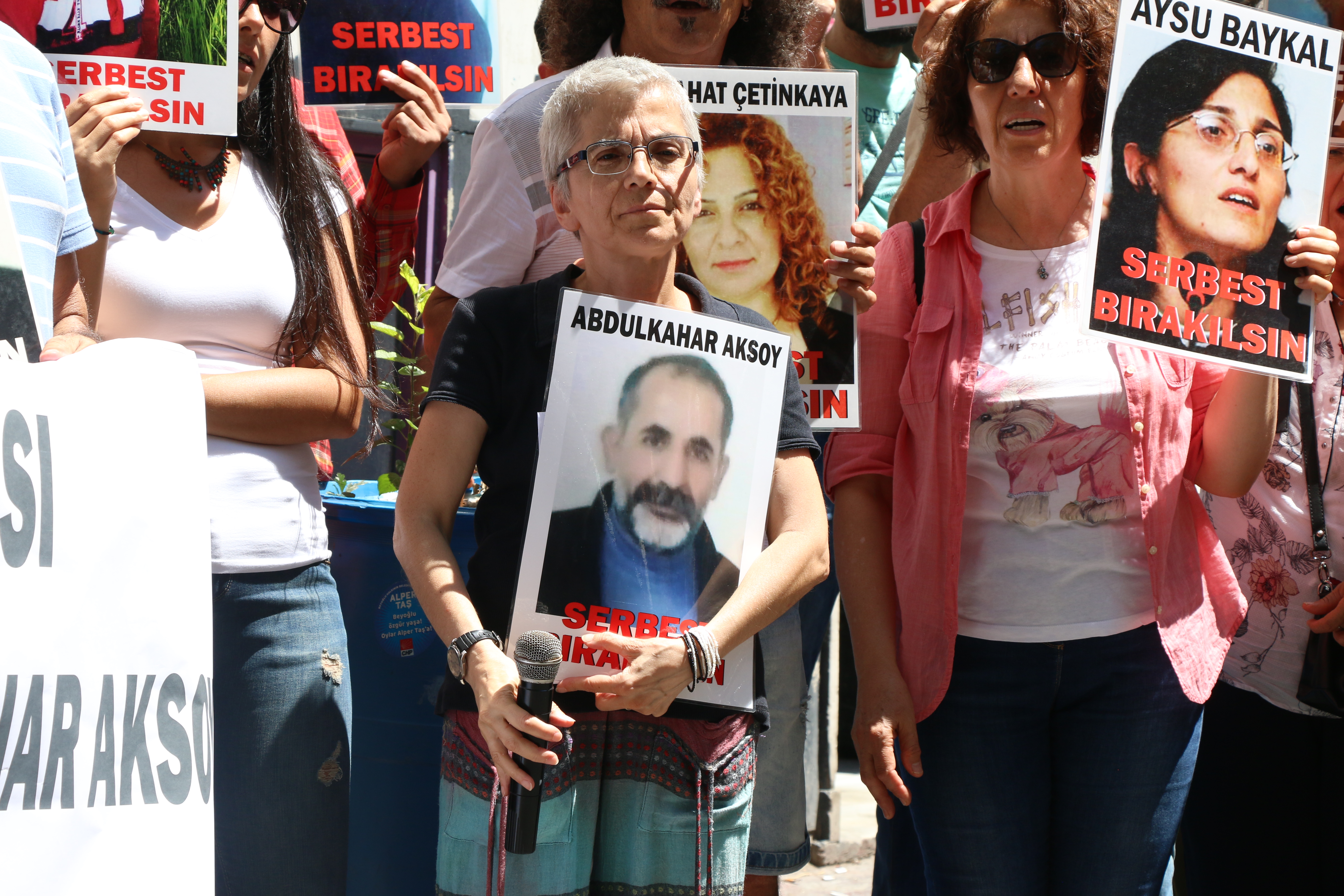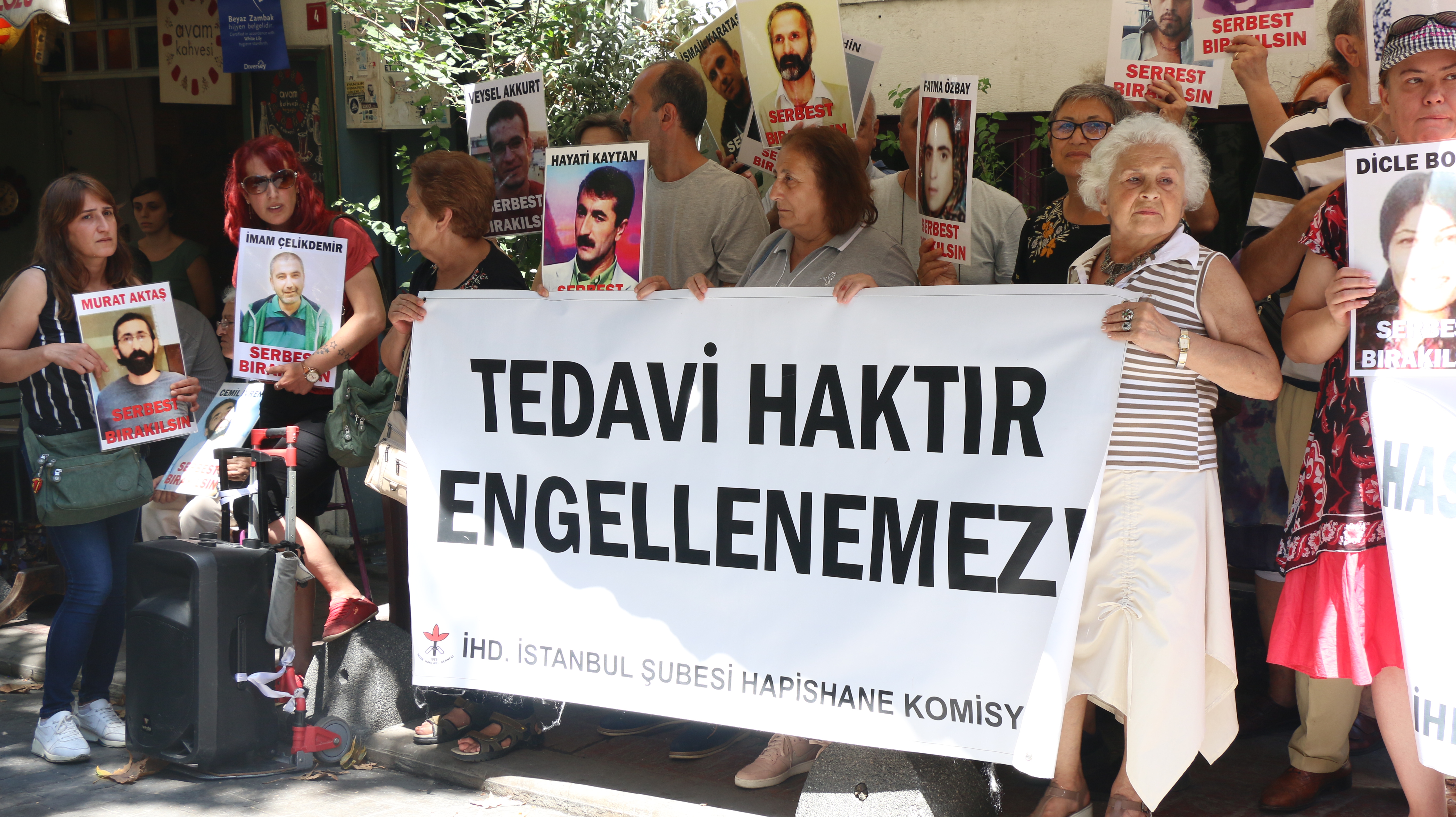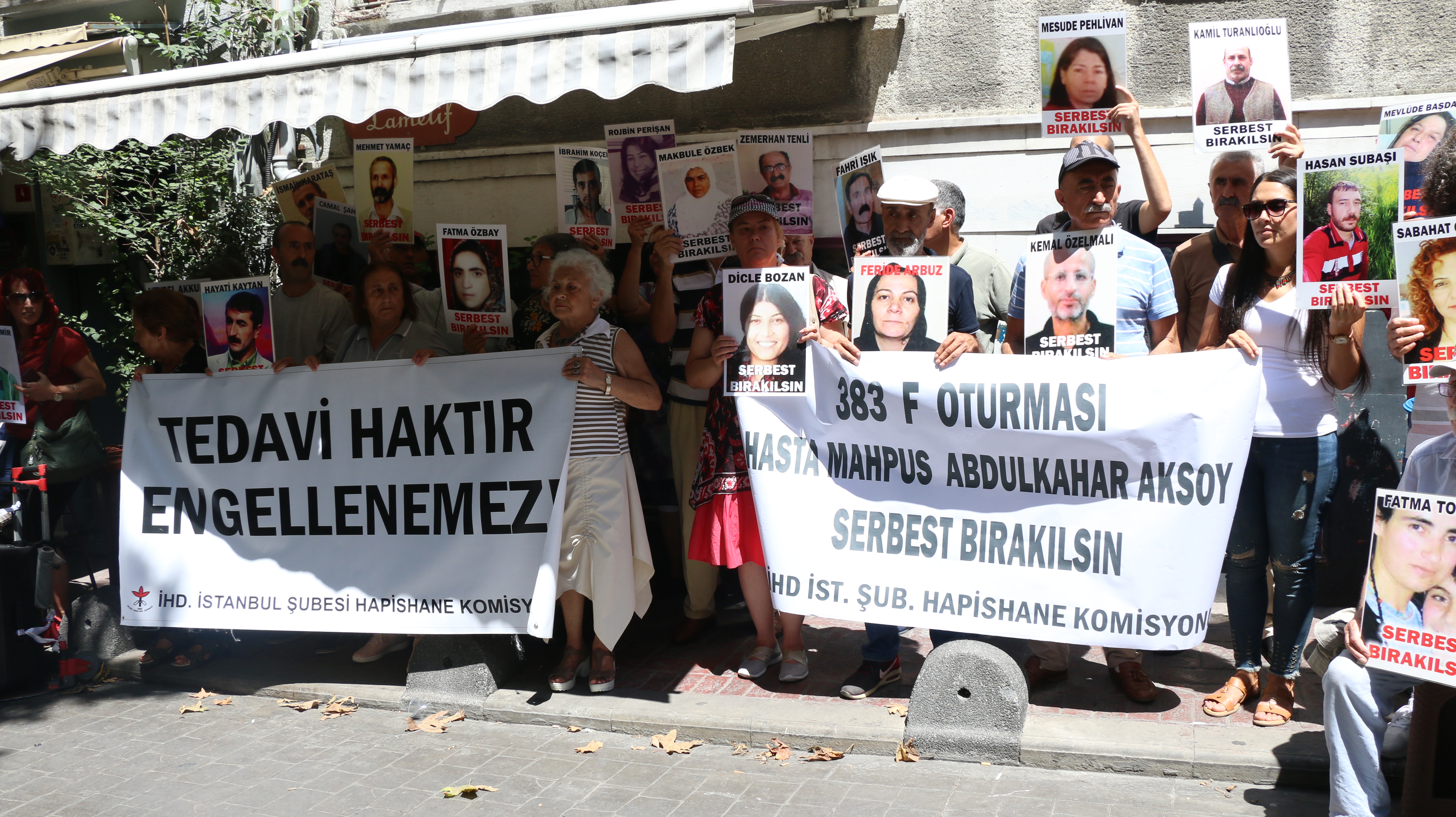 Hasta tutukluların fotoğraflarının taşındığı eylemde, “Tedavi hakkı engellenemez” ve “Hasta mahpuslar serbest bırakılsın” pankartları açıldı. Ağır hasta tutuklu Abdulkahar Aksoy’un durumuna dikkat çekilen eylemde açıklamayı İHD İstanbul Şubesi Hapishane Komisyonu üyesi Hatice Onaran yaptı.