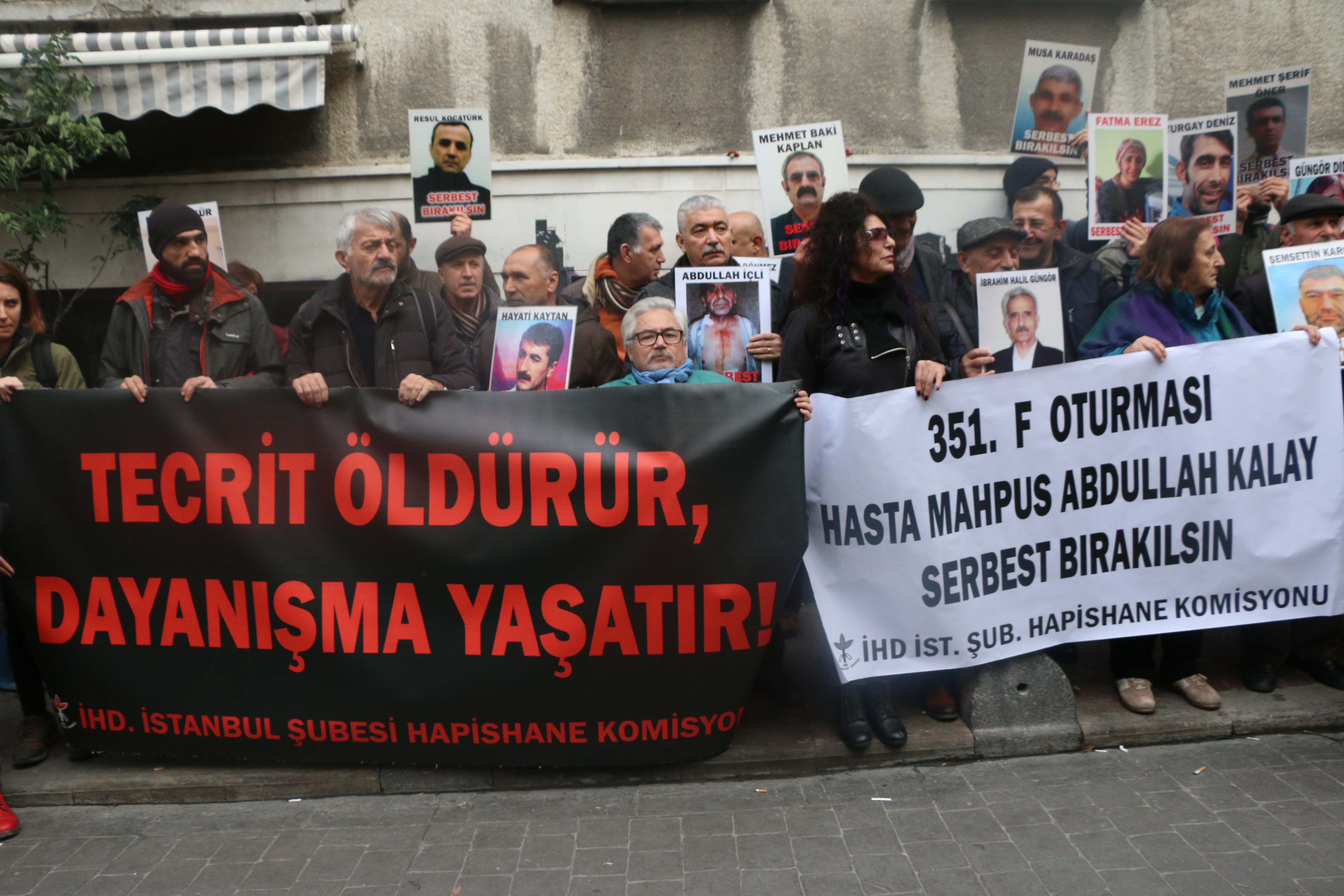 İHD İstanbul Şubesi’nin bulunduğu Beyoğlu Çukurlu Çekme Sokak’ta bir araya gelen insan hakları savunucuları “Tecrit öldürür dayanışma yaşatır”, “Hasta mahpus Abdullah Kalay serbest bırakılsın” yazılı pankartlar açtı. Eylemde basın metnini okuyan Hatice Onaran, hasta mahpusların tutuklu olmayan kişilerle aynı sağlık hizmetine erişme hakları olduğuna dikkat çekti.