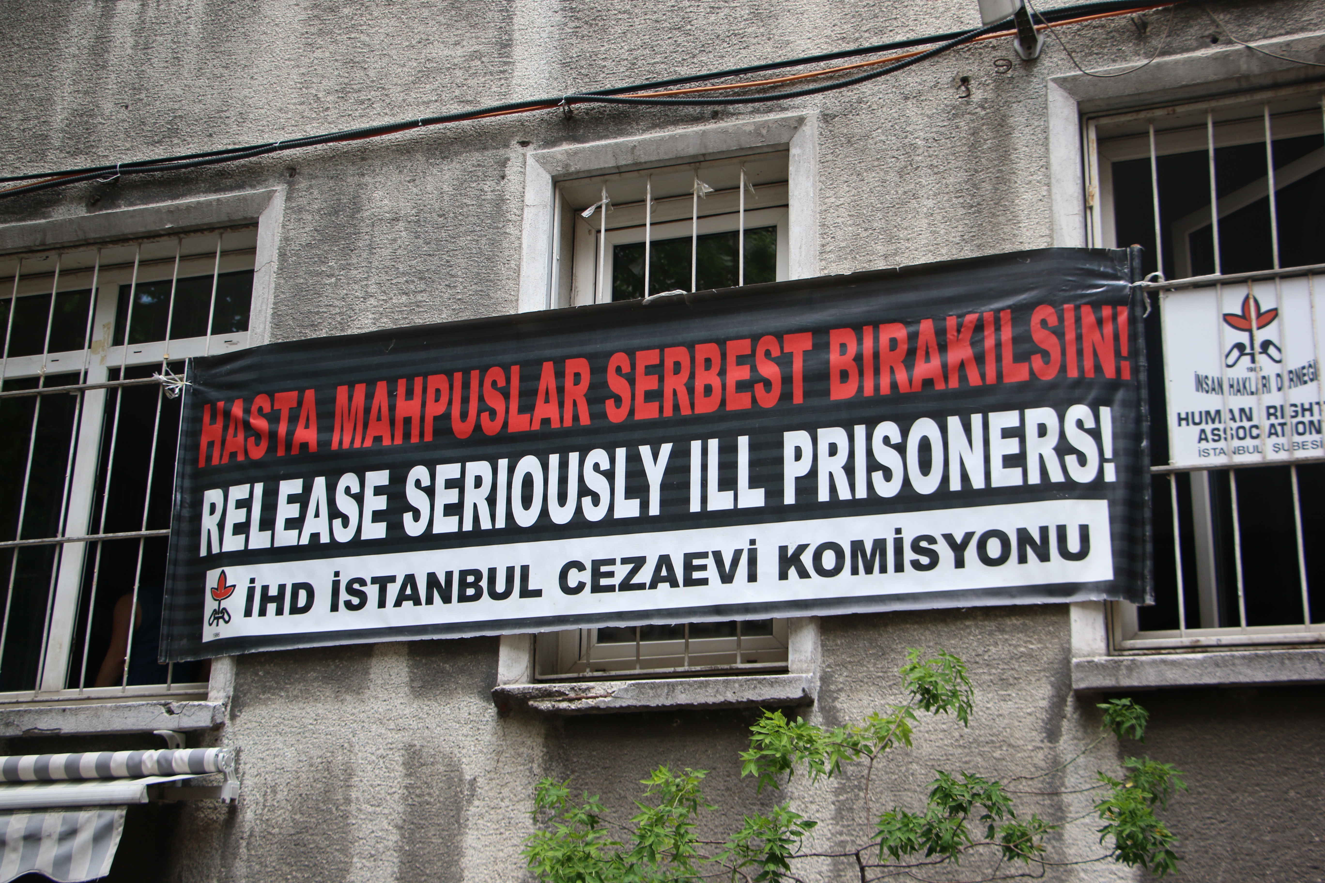 İnsan Hakları Derneği (İHD) İstanbul Şubesi Hapishane Komisyonu’nun hasta tutukluların serbest bırakılması talebiyle Galatasaray Meydanı’nda yapmak istediği “F Oturması”nın 375’inci haftası da polis tarafından engellendi. Bunun üzerine açıklama İHD’nin Taksim’de bulunan binası önünde yapıldı. Hasta tutukluların fotoğraflarının taşındığı açıklamada, “Hasta mahpuslar serbest bırakılsın” ve “Tecrit öldürür dayanışma yaşatır” pankartları açıldı. Bu hafta hasta tutuklu olan ve hastaneye sevki yapılmayan yüzde 78 engelli İbrahim Halil Güngör’ün (74) durumuna dikkat çekildi.