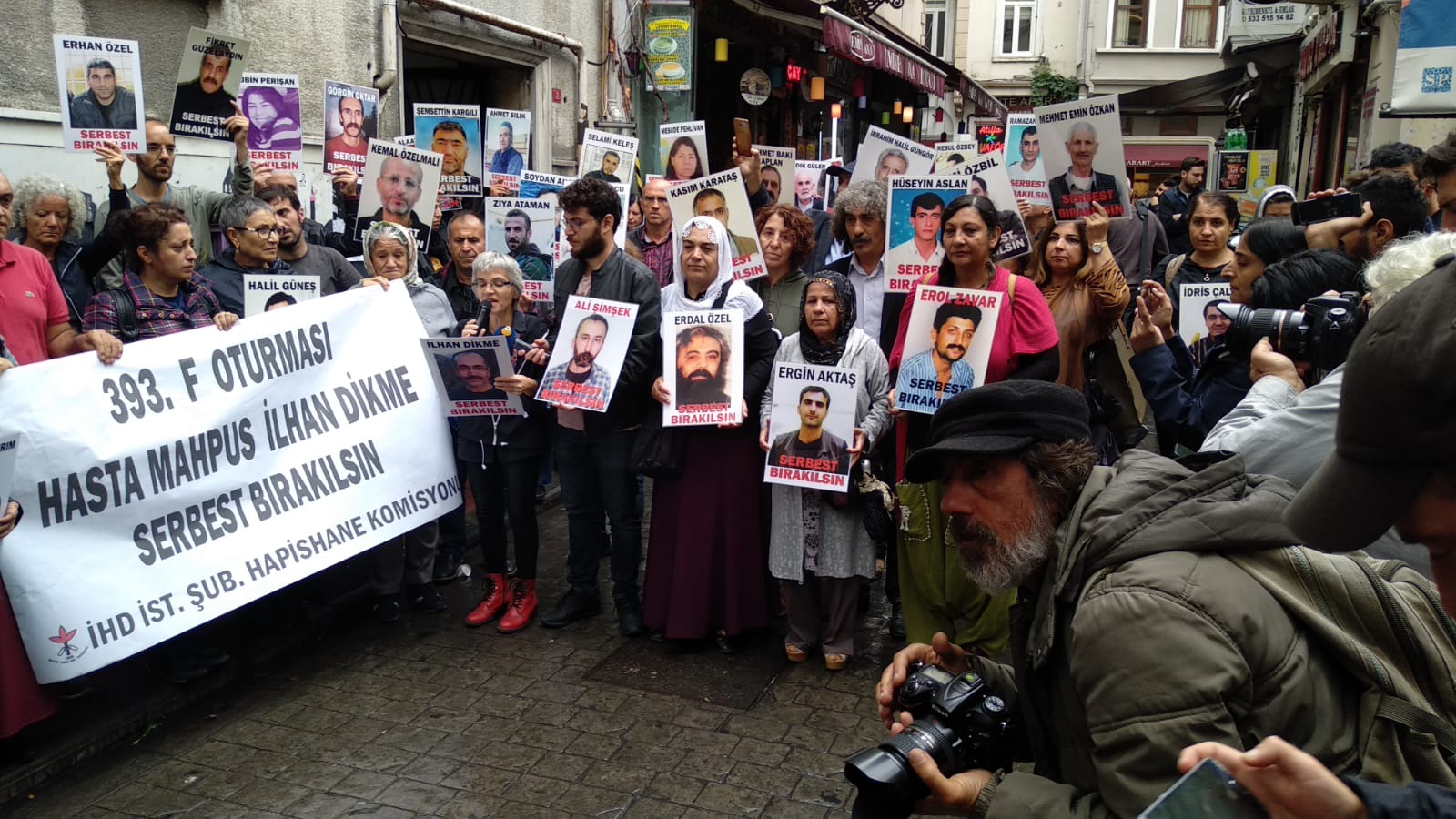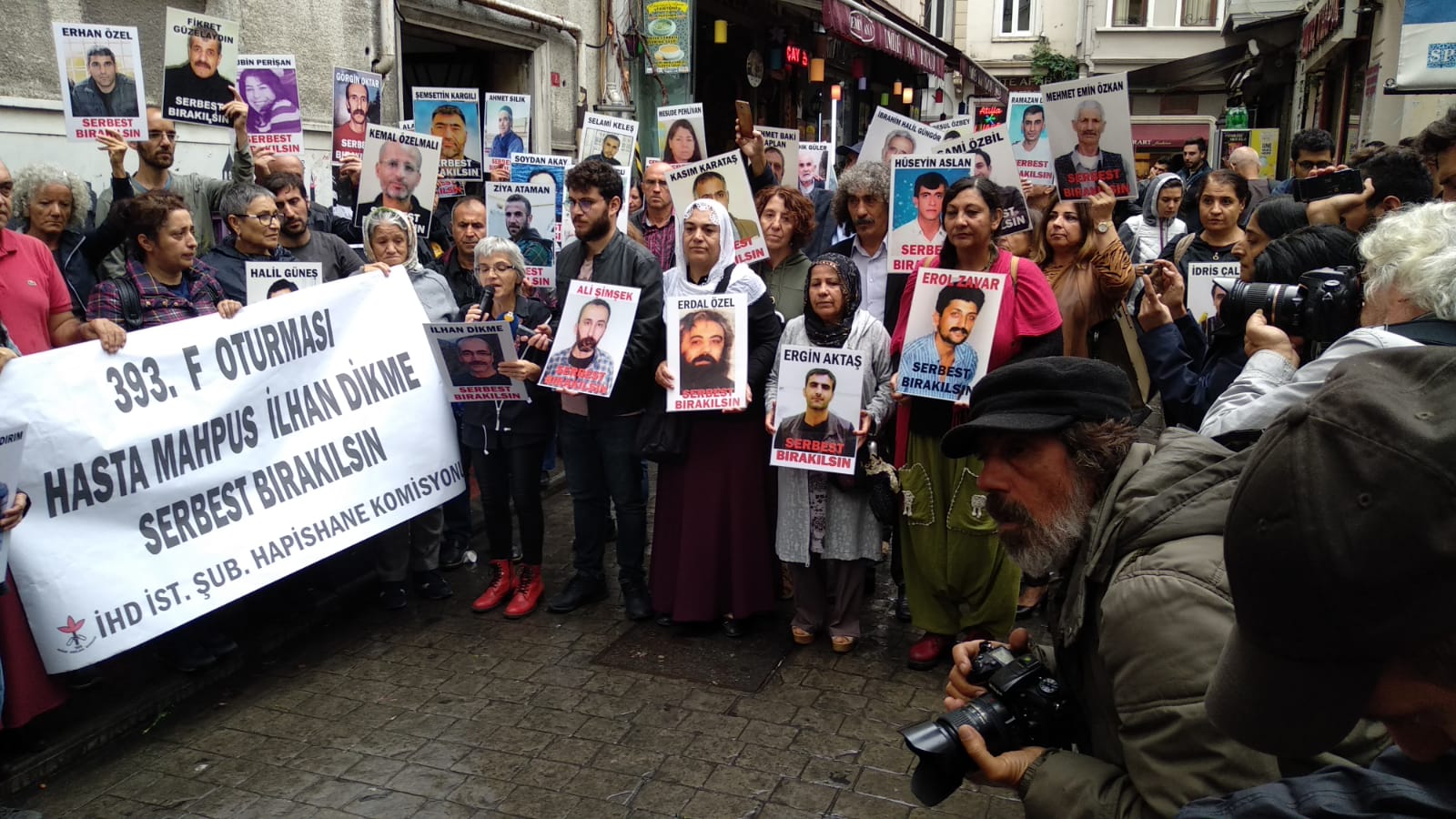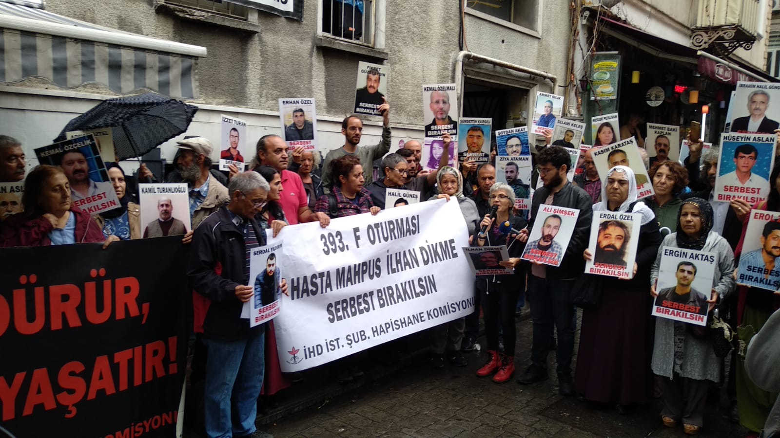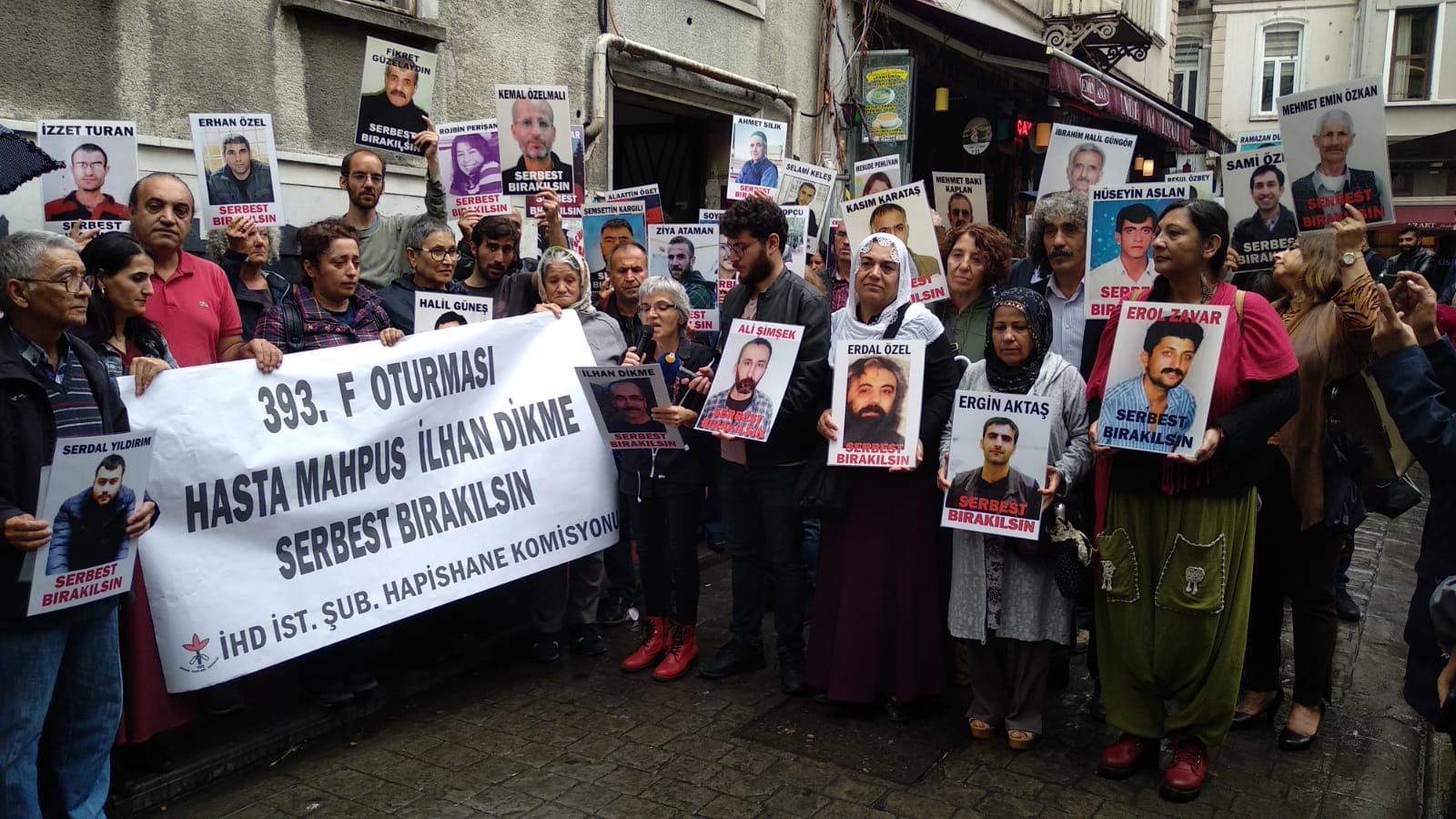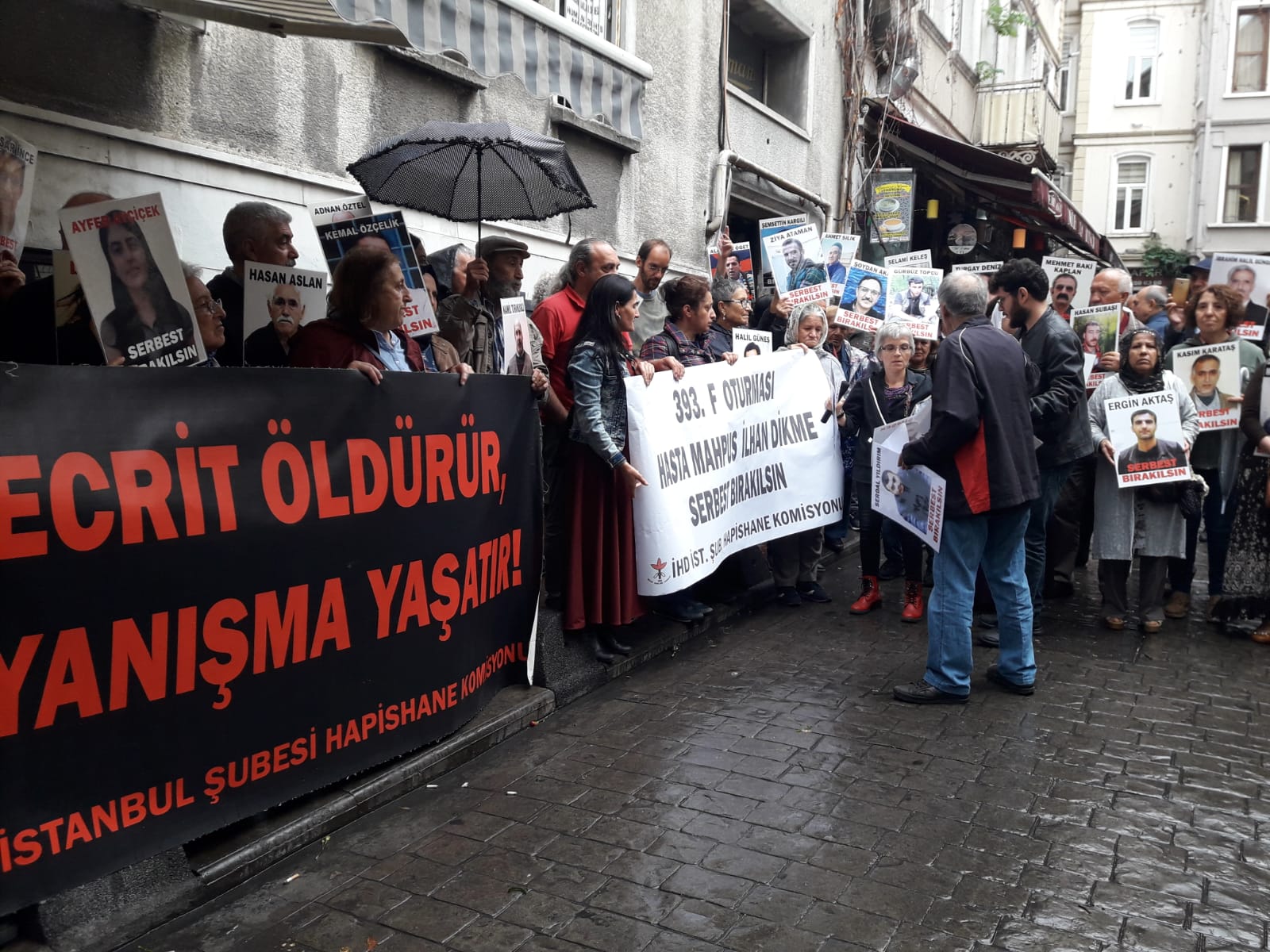 İnsan Hakları Derneği (İHD) İstanbul Şubesi Hapishane Komisyonu’nun hasta tutukluların serbest bırakılması talebiyle Galatasaray Meydanı’nda yapmak istediği ‘F Oturması’nun 393’üncü haftası da polis tarafından engellendi. Bunun üzerine açıklama İHD’nin Taksim’de bulunan binası önünde yapıldı. Hasta tutukluların fotoğraflarının taşındığı açıklamada, “Tecrit öldürür, dayanışma yaşatır!” ve “Hasta Mahpus İlhan Dikme serbest bırakılsın” pankartları açıldı.