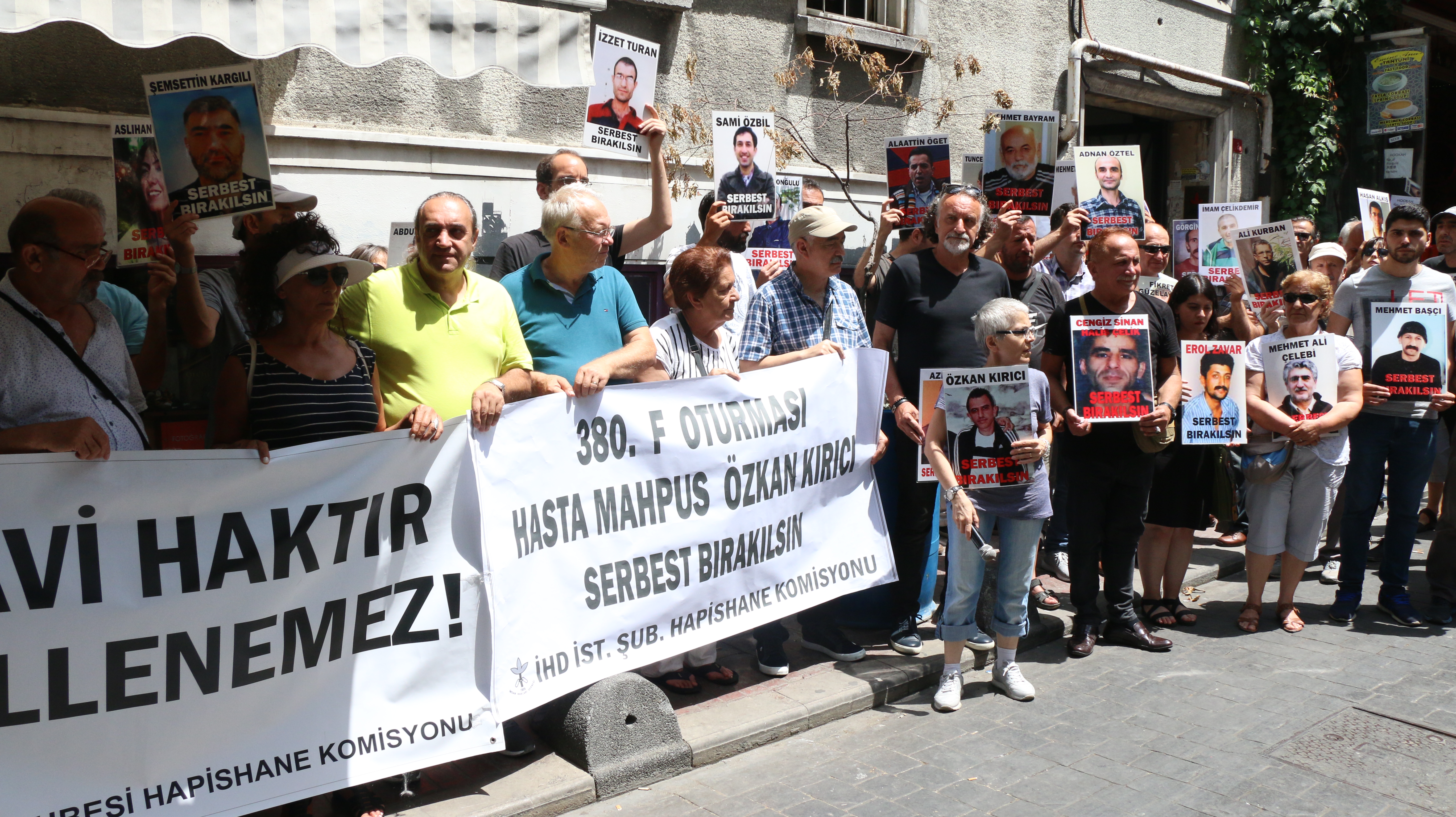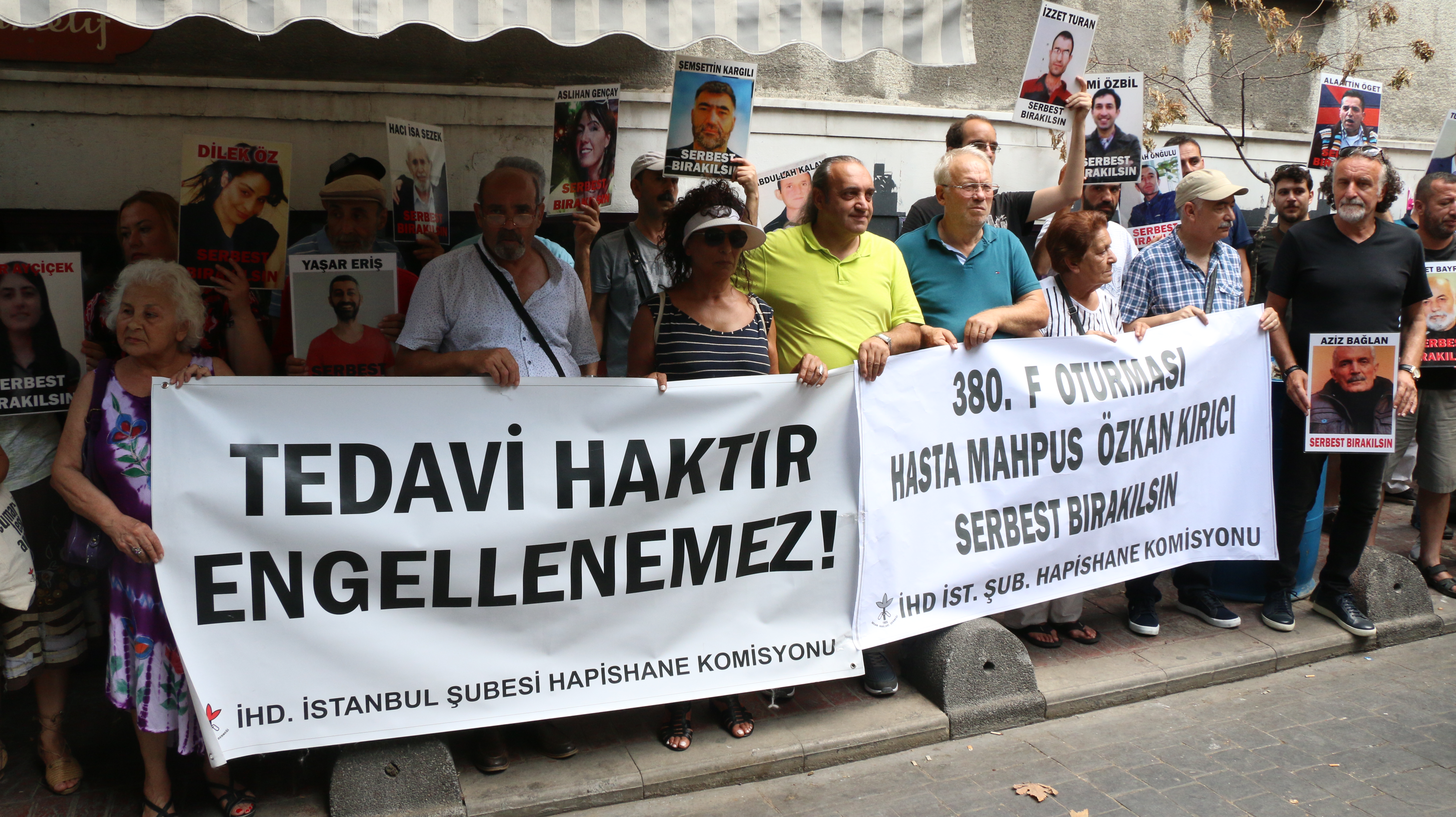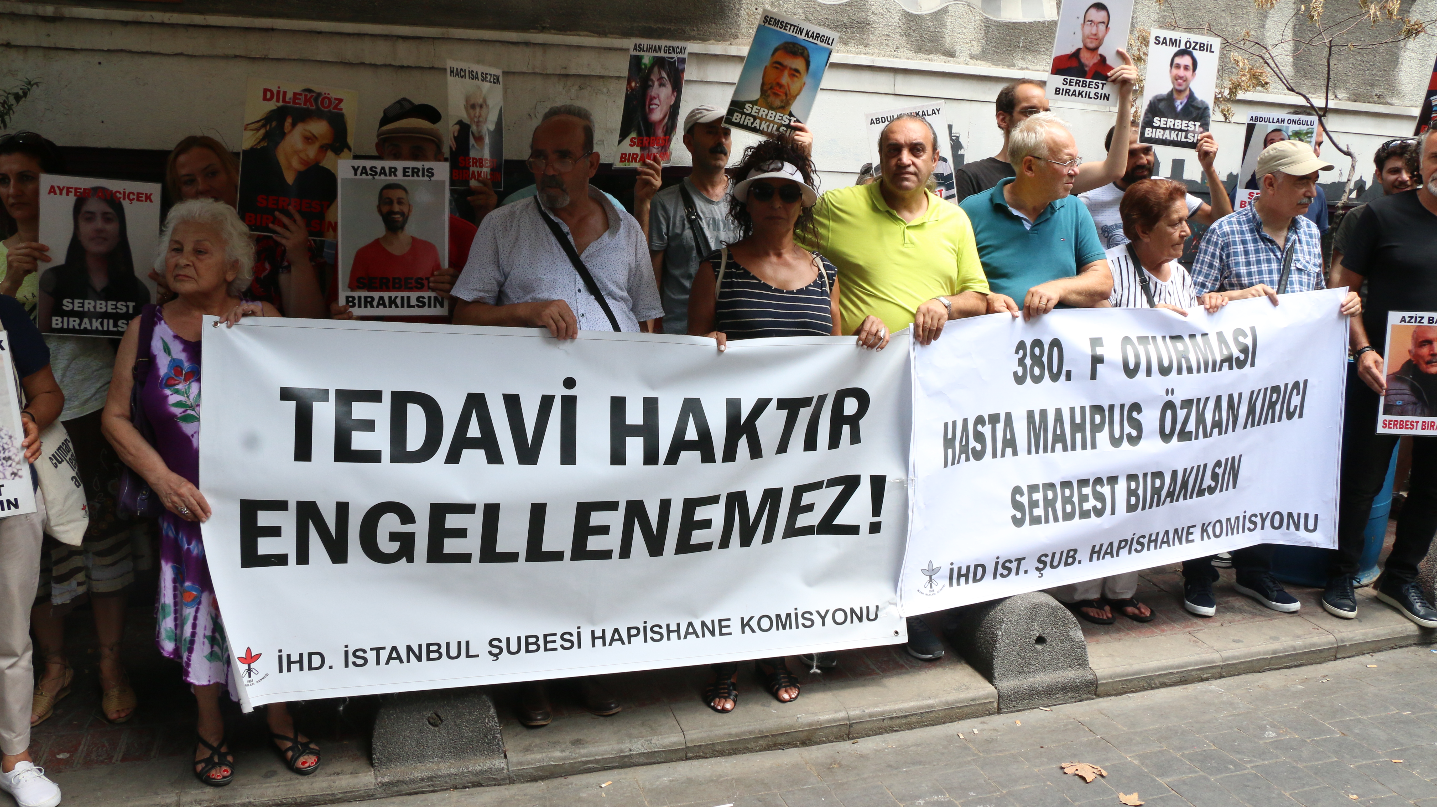 İnsan Hakları Derneği (İHD) İstanbul Şubesi Hapishane Komisyonu üyeleri, hasta tutukluların durumuna dikkat çekmek amacıyla 380. F Oturması için İHD İstanbul Şubesi önünde bir araya geldi. “F Tipi hapishaneler kapatılsın”, “Tecrit öldürür, dayanışma yaşatır” ve “Tedavi haktır, engellenemez” pankartlarının açıldığı eylemde, yine hasta tutukluların fotoğrafları taşındı. Eylemde “Hasta mahpuslar serbest bırakılsın”, “Özkan Kırıcı serbest bırakılsın” sloganları atıldı.