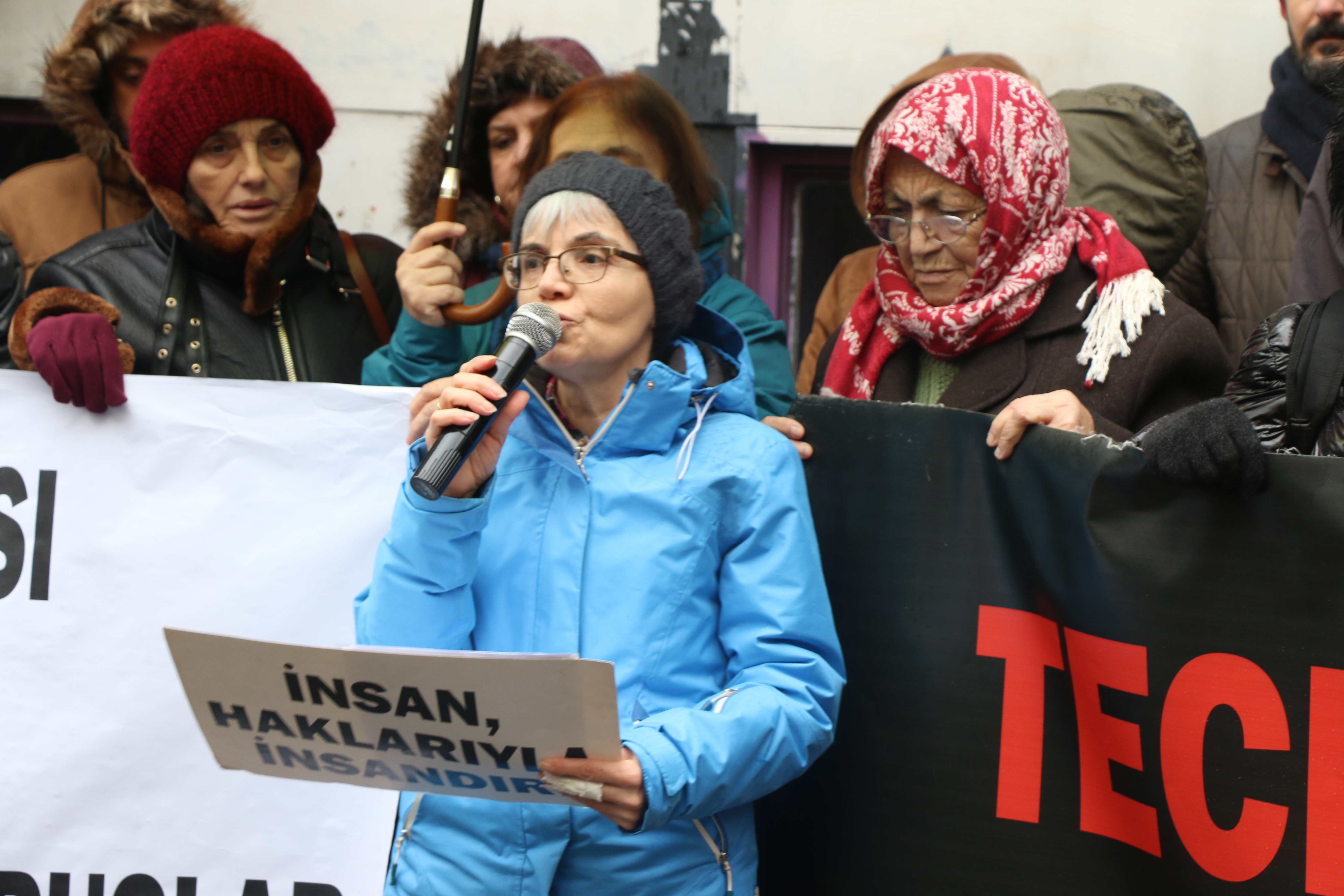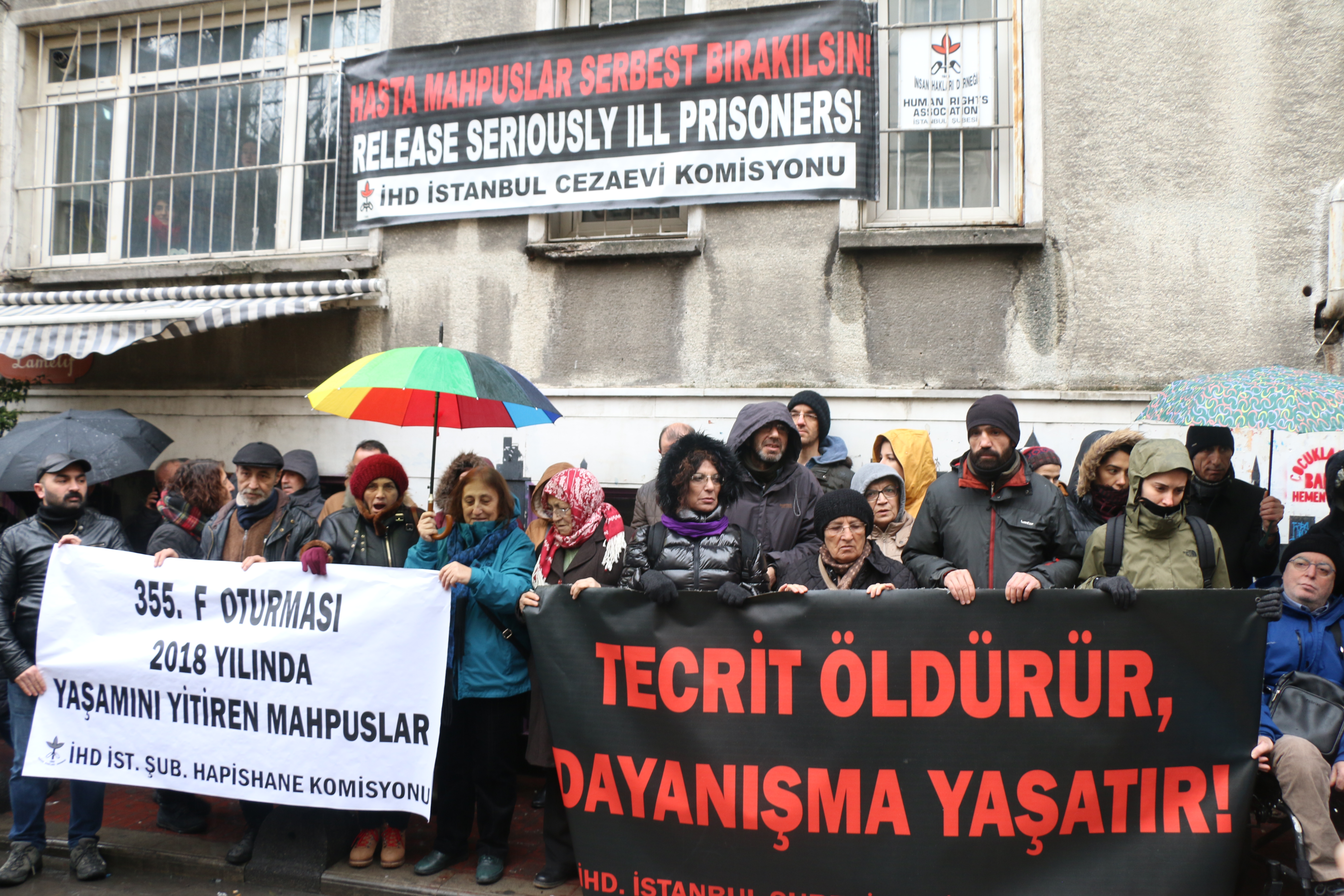 “Tecrit öldürür dayanışma yaşatır” pankartının açıldığı eylemde “Hasta mahpuslar serbest bırakılsın”, “İnsan haklarıyla insandır” sloganları atıldı. Basın metnini İHD üyesi Hatice Onaran okudu.