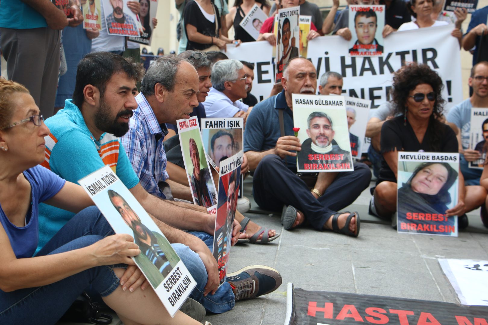 İnsan Hakları Derneği (İHD) İstanbul Şubesi Hapishane Komisyonu, hasta tutukluların durumuna dikkat çekmek amacıyla her hafta düzenlediği “F Oturumu”nun 329’uncusunu Galatasaray Meydanı’nda gerçekleştirdi. Bu haftaki eylemde Tekirdağ 1 Nolu T Tipi Cezaevi’nde bulunan Abdulkadir Fırat’ın durumuna dikkat çekildi. “Tecrit öldürür dayanışma yaşatır” ve “Tedavi haktır engellenemez” pankartlarının açıldığı eylemde sık sık, “Çıplak arama işkencesine son” ve “OHAL işkencesine son” sloganları atıldı.