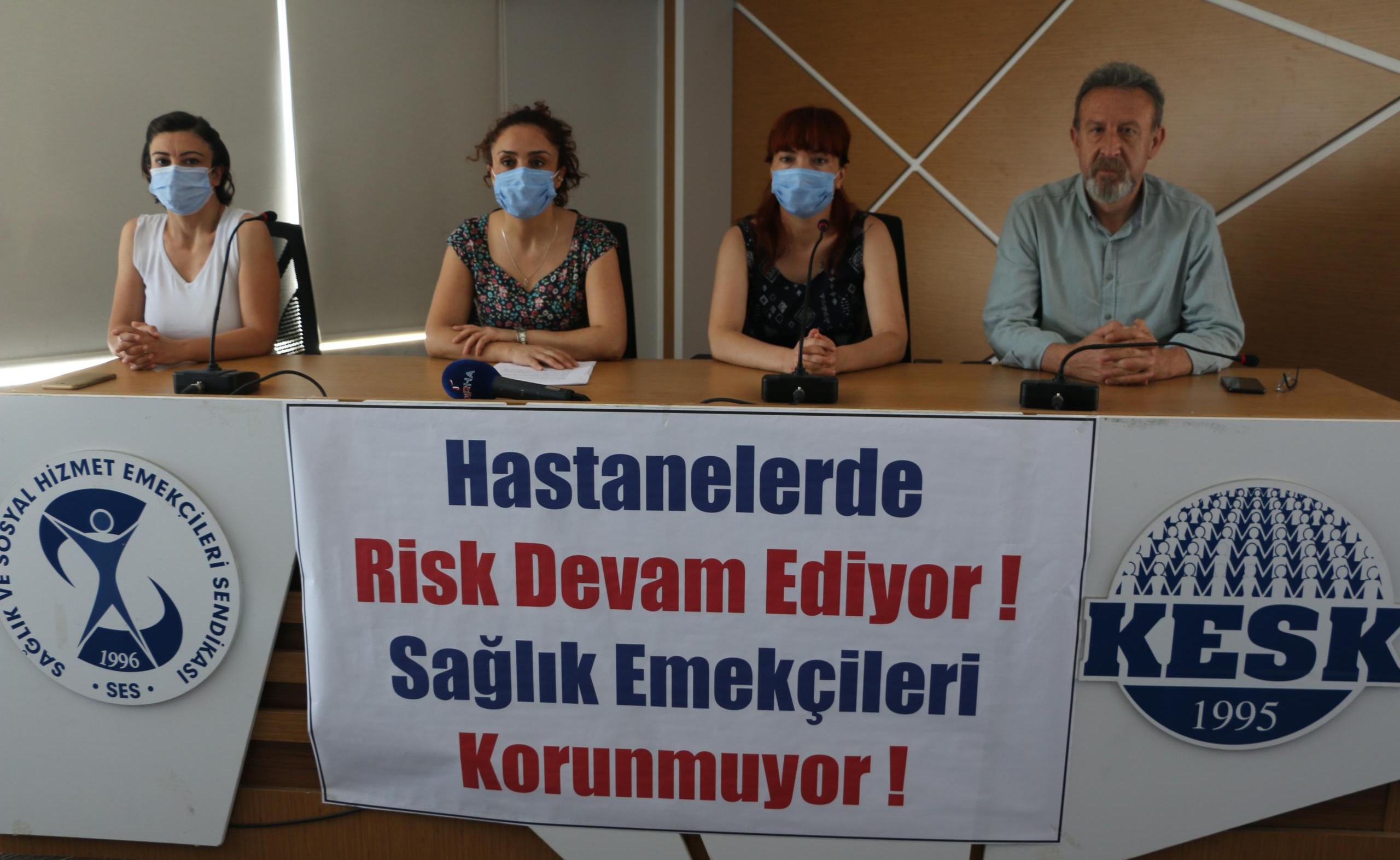Açıklamada, hastanelerdeki riskin devam ettiğinin altı çizilerek “Sağlık emekçileri korunmuyor” denildi.