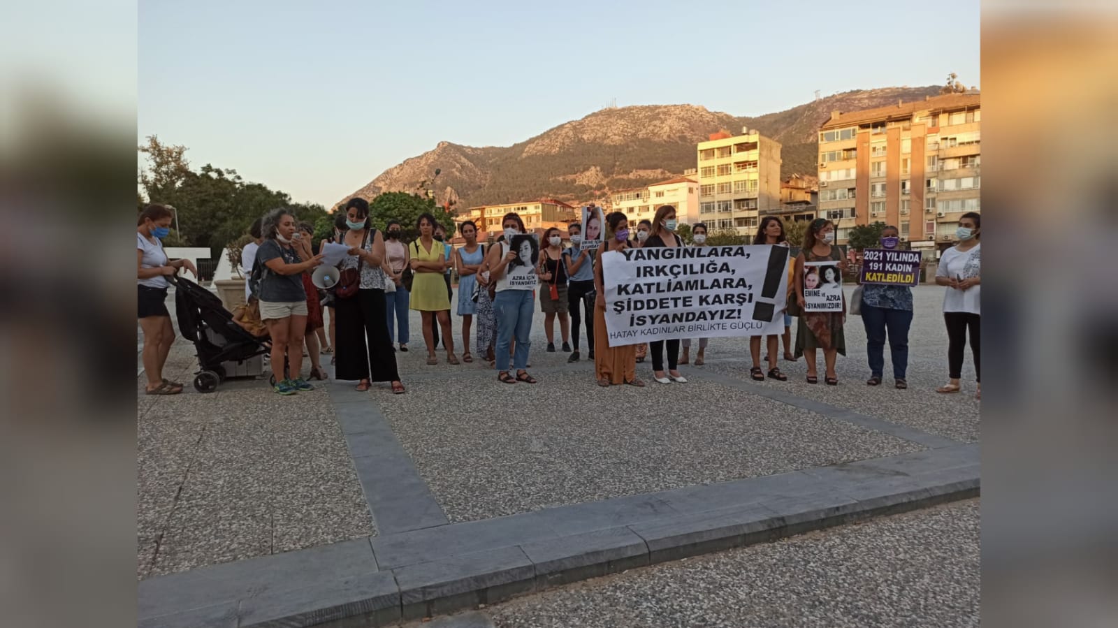 Hatay Kadınla Güçlü Platformu; orman yangınları, kadın cinayetleri ve Konya’da Kürt oldukları için öldürülen 7 yurttaş için Antakya Büyük Park’ta basın açıklaması yaptı. Açıklamada ‘Yangınlara, ırkçılığa, katliamlara, şiddete karşı isyandayız’ pankartı açıldı.