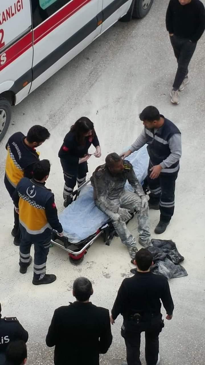Sağlık ekipleri, A.Y.’nin tedavisini yaparken, üzerine yapışan elbiseleri de keserek çıkardı. A.Y. Hatay Devlet Hastanesi’ne kaldırıldı.