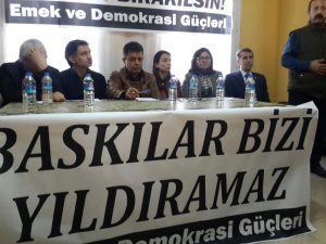 Hatay’da gerçekleşen gözaltı operasyonları ve genel gündem üzerine Emek ve Demokrasi Güçleri, Sosyalist Yeninden Kuruluş Partisi Eş Genel Başkanı Tülay Hatimoğulları, HDP Diyarbakır Milletvekili Ziya Pir ve CHP Hatay Milletvekili Serkan Topal’ın katılımıyla forum düzenlendi.