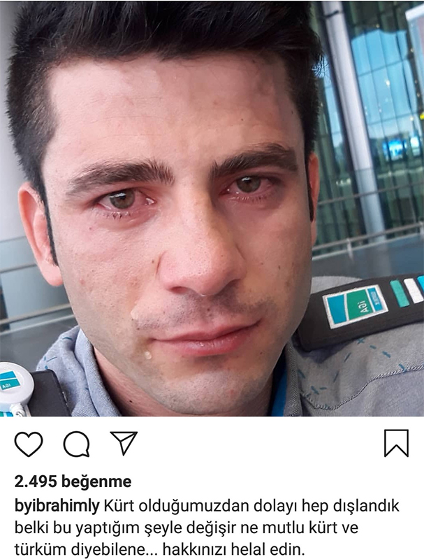 İbrahim, “Kürt olduğumuzdan dolayı hep dışlandık belki bu yaptığım şeyle değişir ne mutlu Kürt ve Türk’üm diyebilene… hakkınızı helal edin” paylaşımında bulundu.