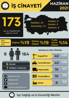 PİRHA-İşçi Sağlığı ve İş Güvenliği Meclisi (İSİG Meclisi) Haziran ayında 173, yılın ilk altı ayında en az 1155 işçinin hayatını kaybettiğini duyurdu.