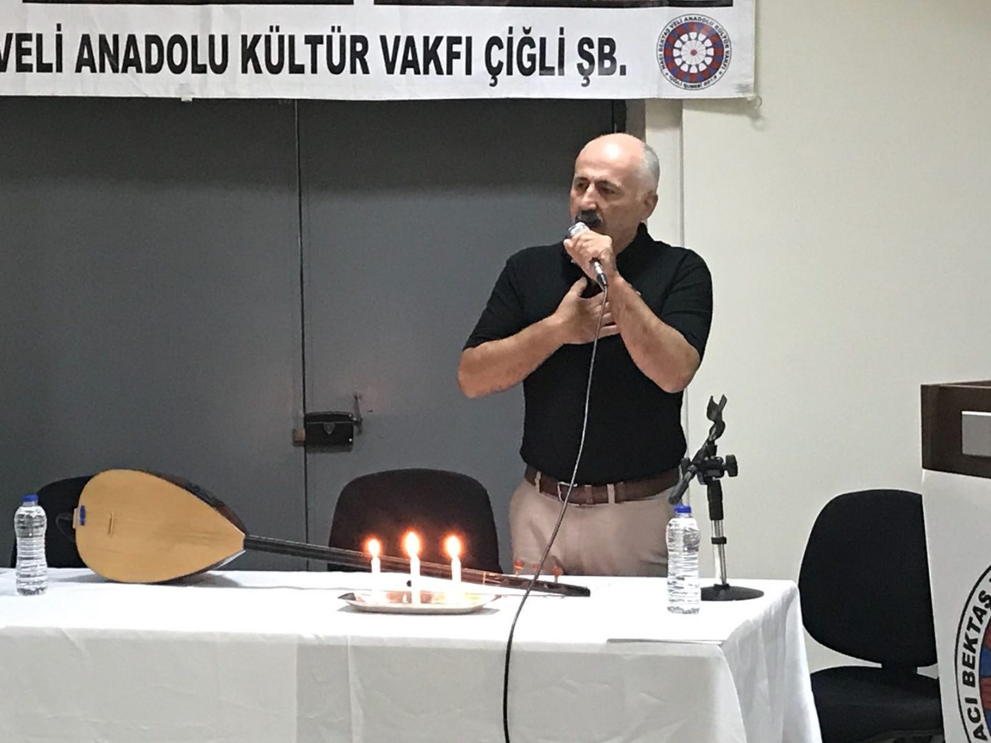 Açılış konuşmasını gerçekleştiren HBVAKV Çiğli Şube Başkanı Hüseyin Han, “Ülkenin bütün kültürlerinin, kimliklerinin asıl kimlik olduğu, hiç kimsenin kimseden üstün olmadığı, asıl olan insan olmak olduğunu belirterek Alevilik vardır, Alevilik haktır diyoruz” diye konuştu.
