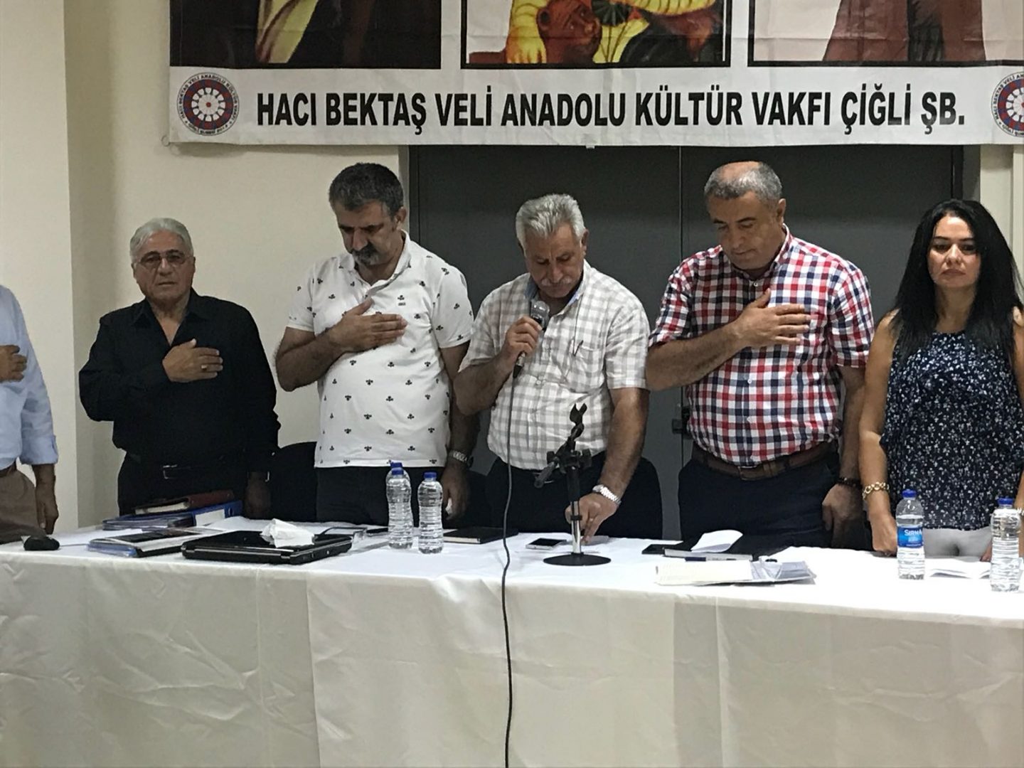 Hacı Bektaş Veli Anadolu Kültür Vakfı (HBVAKV) Ege bölge toplantısını Çiğli Evka 2 Cemevi’de gerçekleştirdi. Toplantı hakka yürüyen tüm hak şehitleri için yapılan bir dakikalık saygı duruşundan sonra, Pir Özdoğan Sağlam’ın çerağ uyandırması ve deyişler seslendirmesi ile başladı.