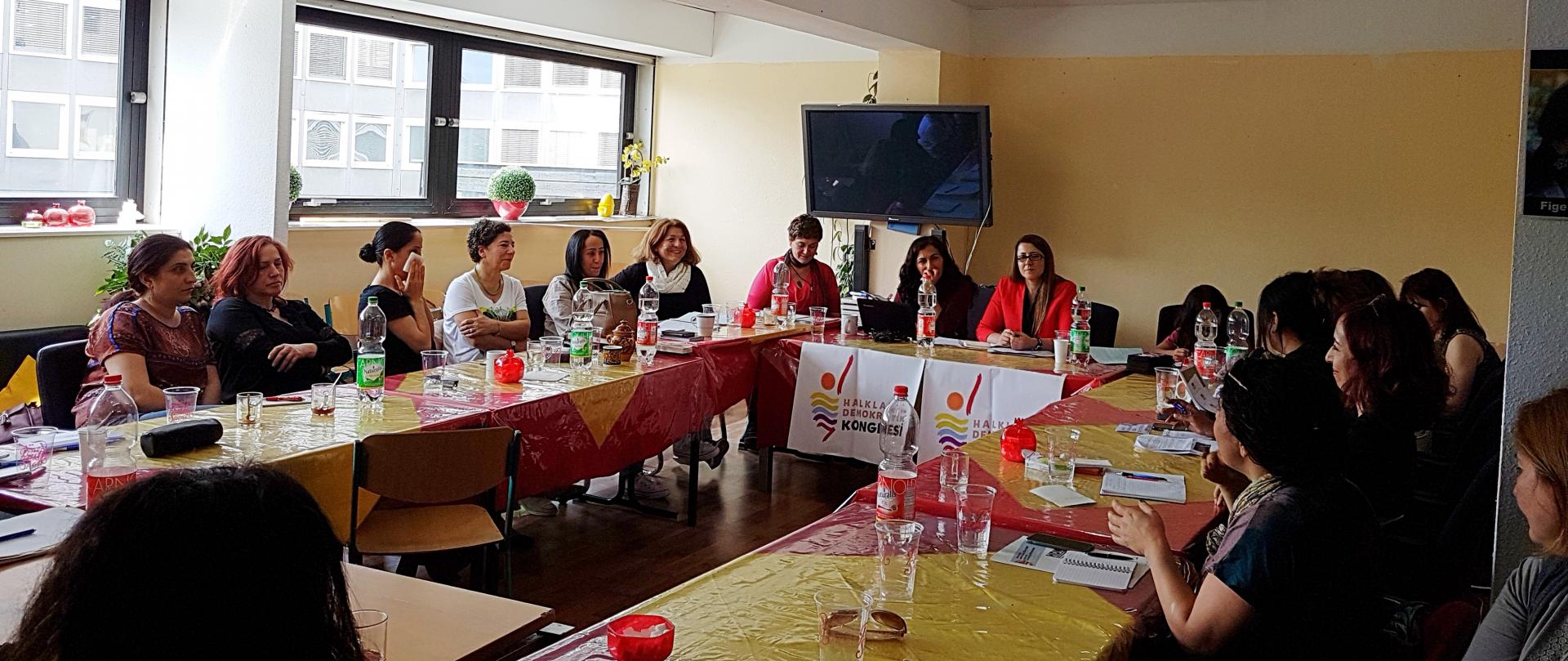 Köln, Stuttgart, Mannheim, Hamburg, Berlin, Nürnberg, Düsseldorf, Münih gibi kentlerden biraraya gelen 28 kadın HDK-Almanya Kadın Meclisi Girişimi’ni oluşturdu. Saygı duruşu ile başlayan toplantı, divan seçimi ile devam etti. Divana HDK-Almanya Eşsözcüsü Elif Sonzamancı ile HDK-Avrupa Eşsözcüsü Esra Asiye Güden seçildi. Toplantıda ilk gündem maddesi olarak bugüne kadar olan kadın eksenli HDK çalışmaları ile kent meclisleri hakkında bilgilendirme konuları ele alındı. Toplantıya katılan HDK-Almanya kadın çalışanları kent meclislerinde yaşanan eksikleri de dile getirdi. Toplantıda ayrıca nasıl bir örgütlenme yapılması gerektiği sorusuna da cevap arandı.