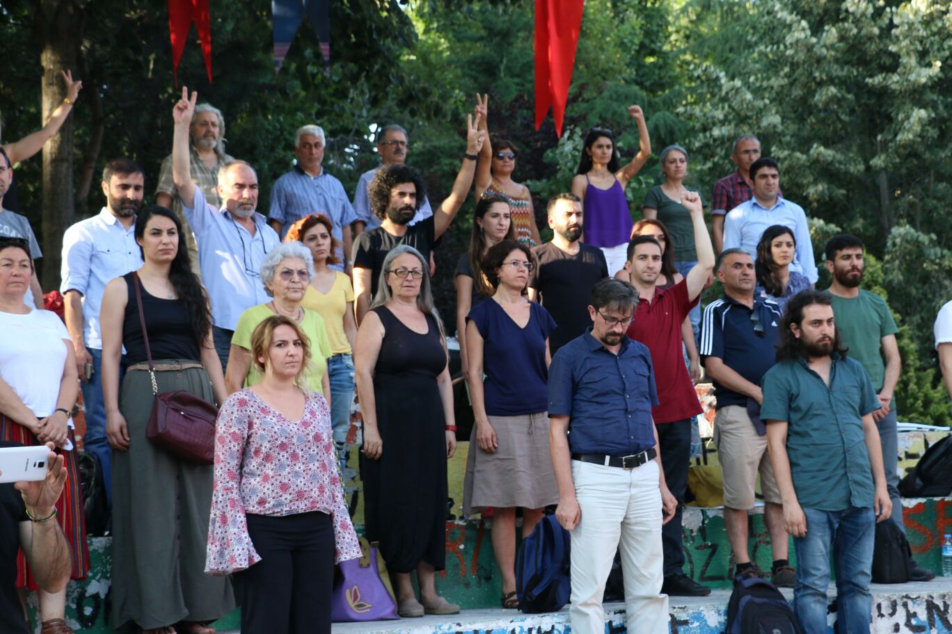 Sivas Katliamı’nda yasamını yitirenlerin isimleri alkışlar eşliğinde okunduktan sonra bütün katliamlarda yaşamlarını yitirenlerin anısına bir dakikalık saygı duruşunda bulunuldu.