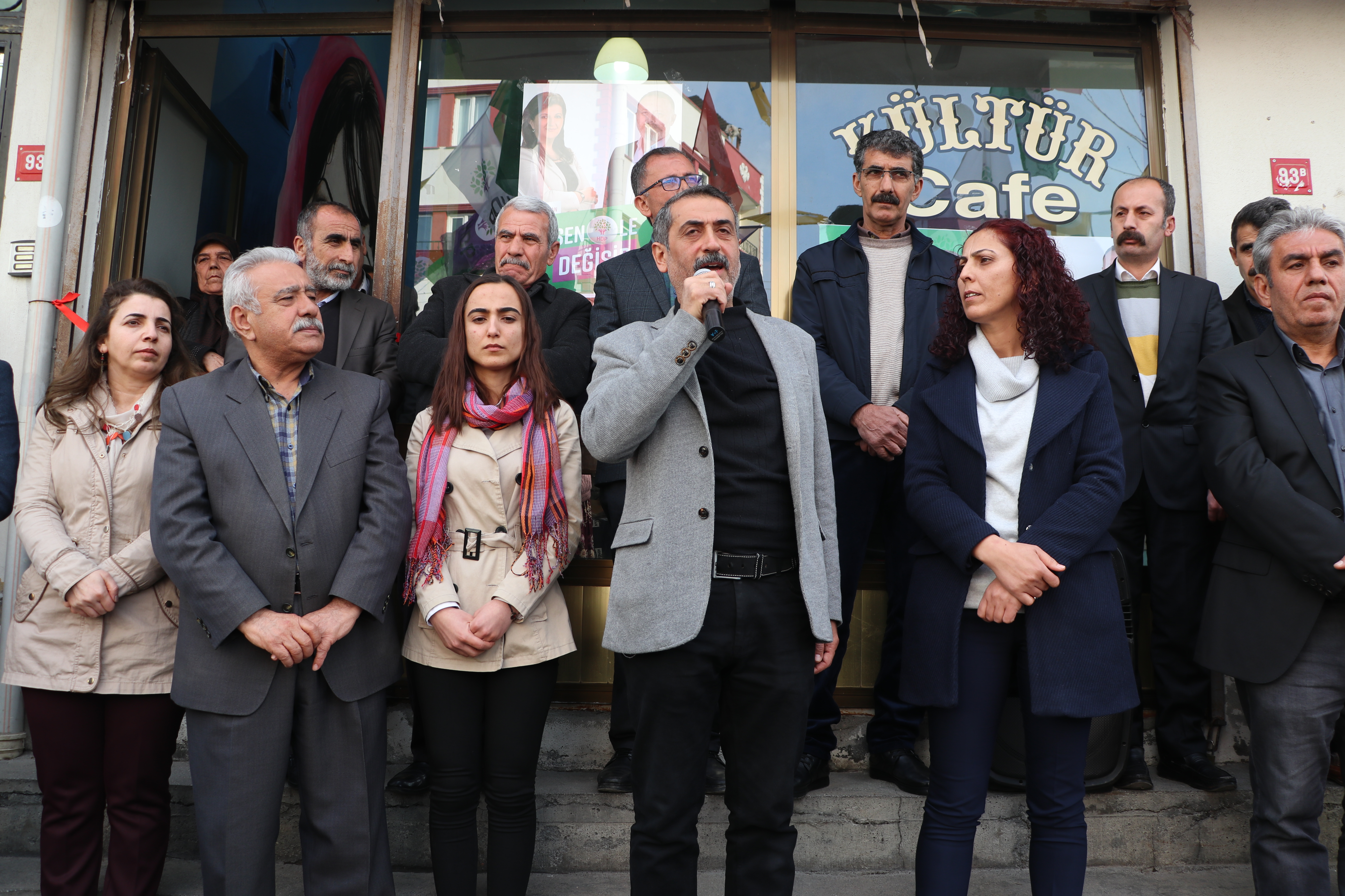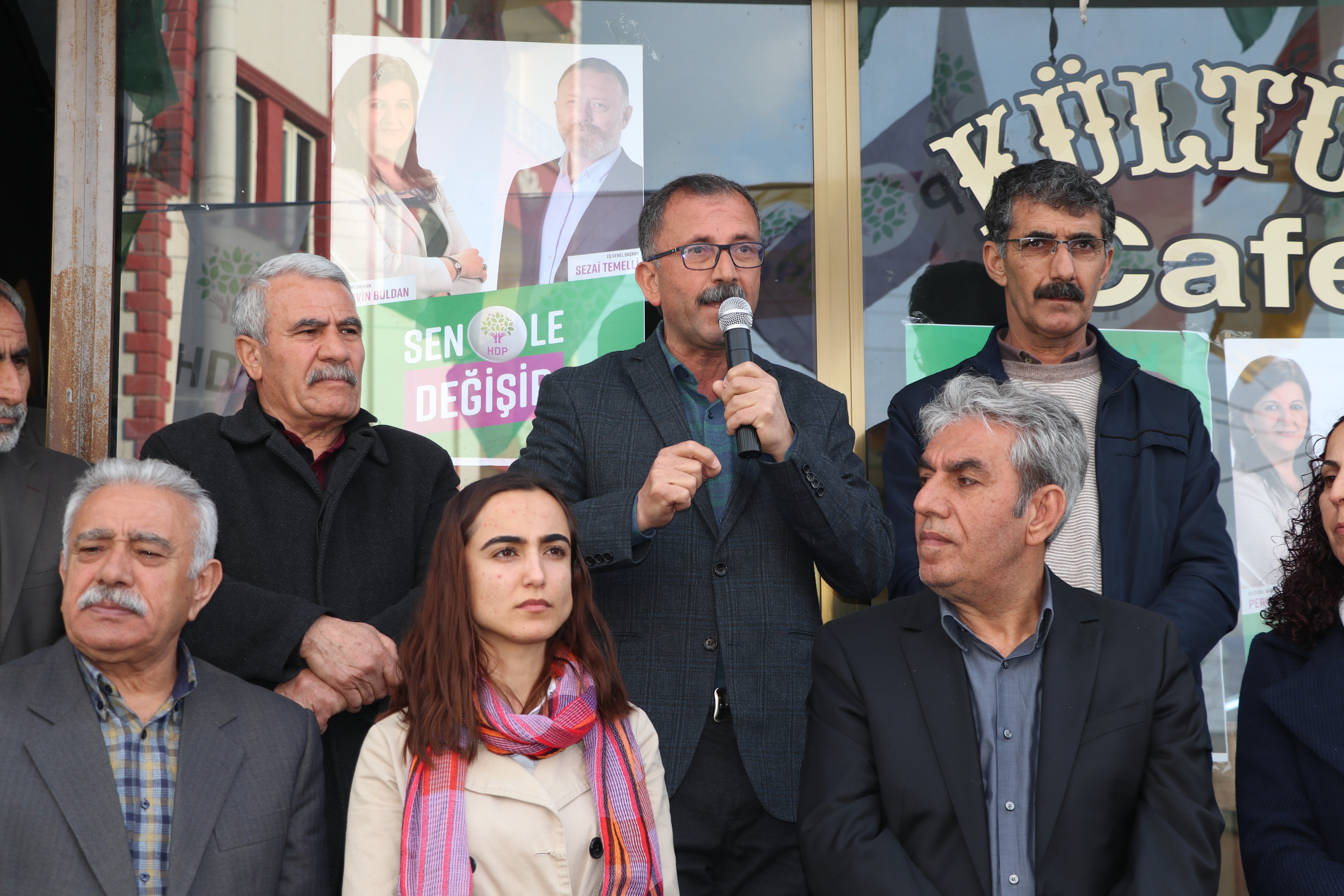 İl genel meclis üyesi adayları adına konuşan Bekir Gürbüz, “Bizler yerelden demokrasiyi inşa etmek için arkadaşlarımızla aday olduk. Savaşa karşı barışı, milliyetçiliğe karşı halkların kardeşliğini öreceğimizin sözünü veriyoruz” ifadelerini kullandı.