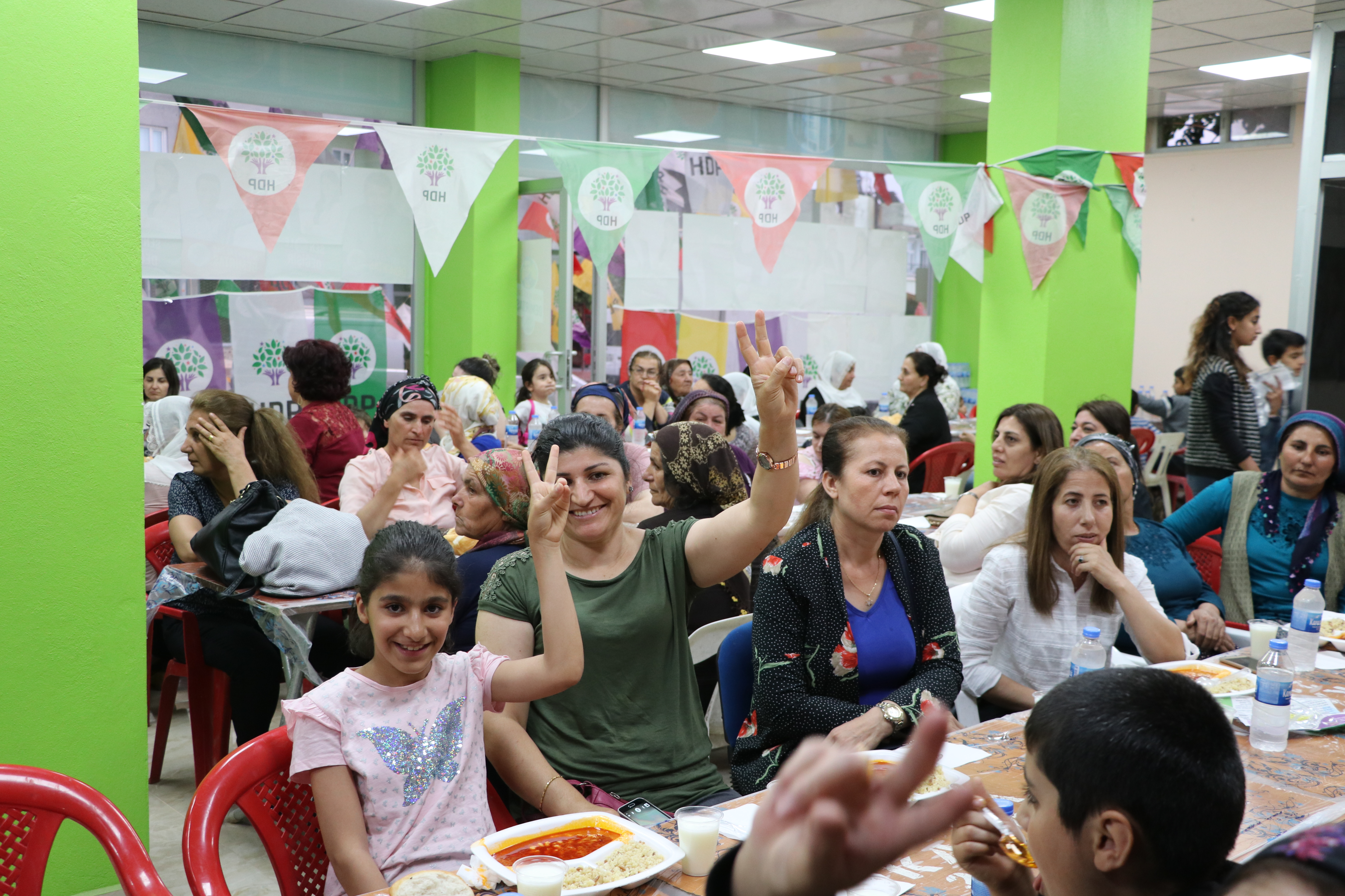 Kadın bürosunda verilen yemeğe katılan HDP Adıyaman kadın milletvekili adayları Hayriye Korkmaz ve Birsen Tunç büroda bulunan kadınları selamlayarak ülkeye barış ve huzurun kadın vekillerle geleceğine vurgu yaptılar.